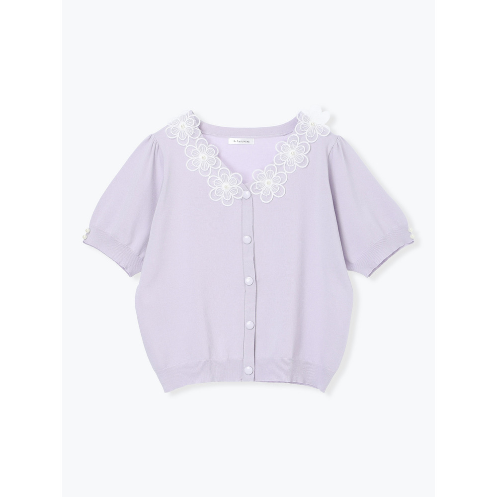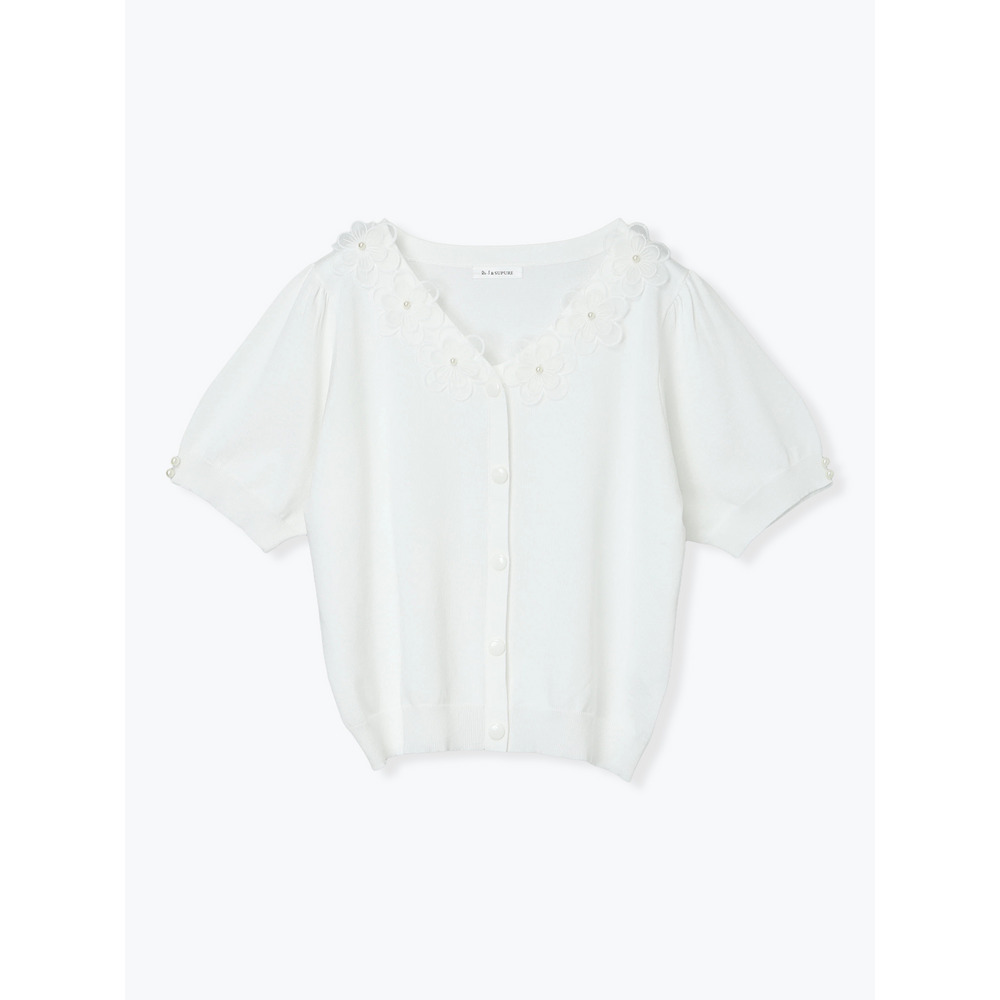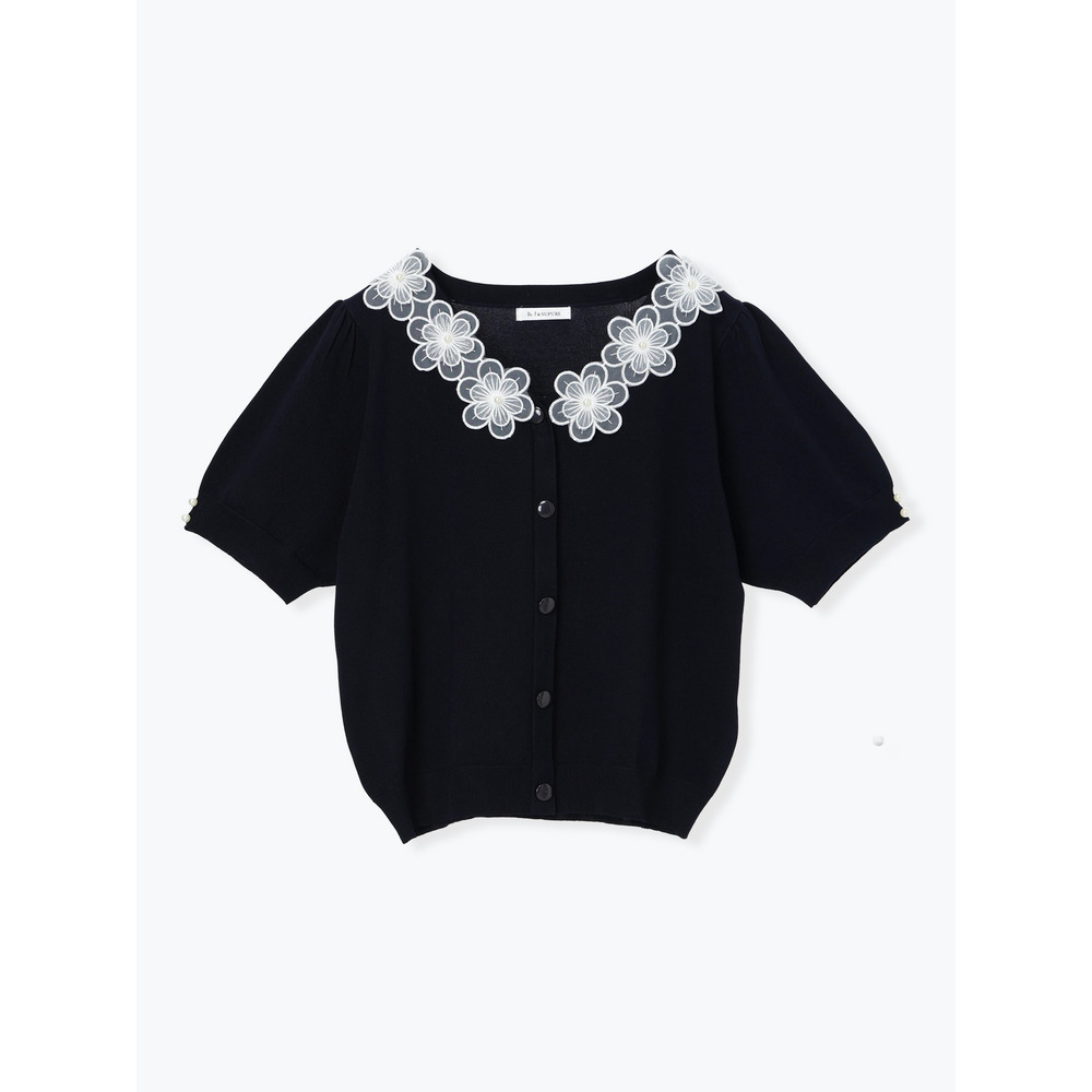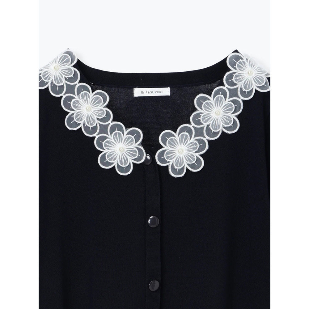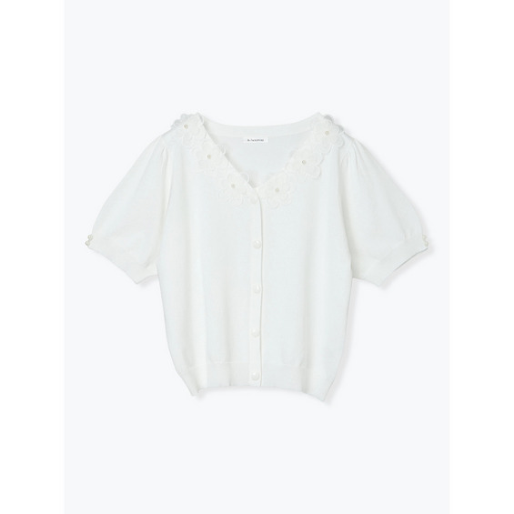 【接触冷感・抗ピル】フラワーレース襟カーディガン風トップス