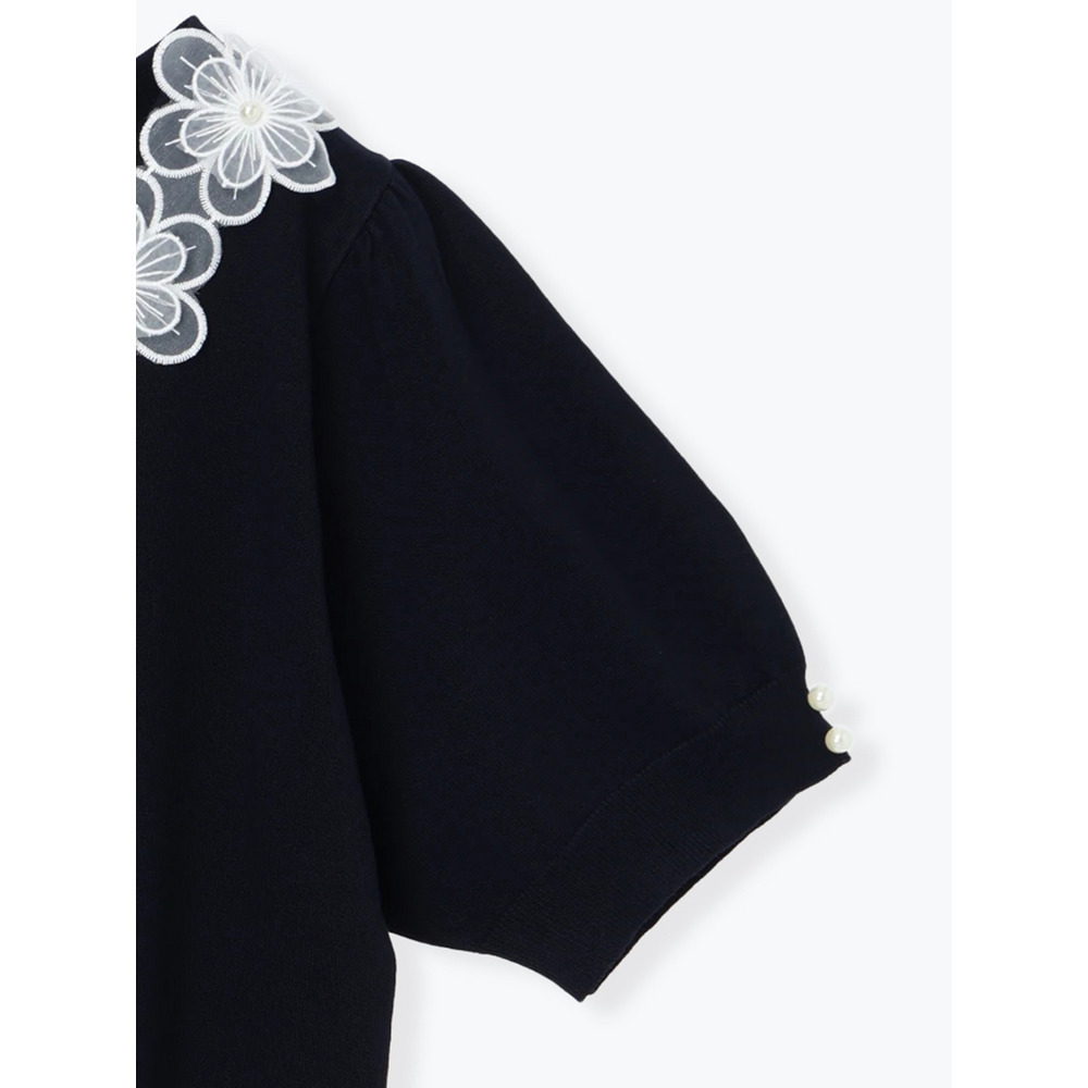 ・襟のフラワーレースが顔周りを華やかに♡Vネックデザインは顔周りをスッキリ見せ!