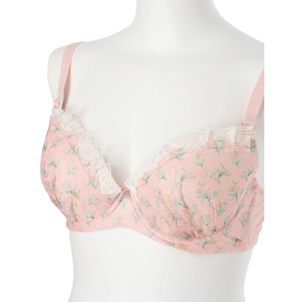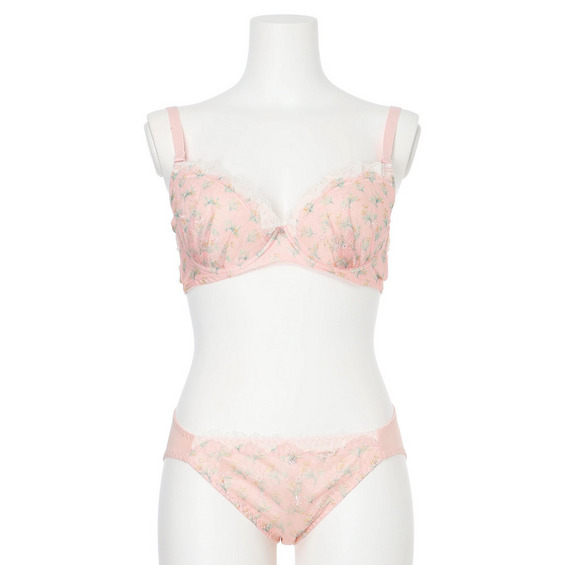 [D85-H95]チューリッププリントソフトワイヤーブラ&ショーツ(モールドカップ)