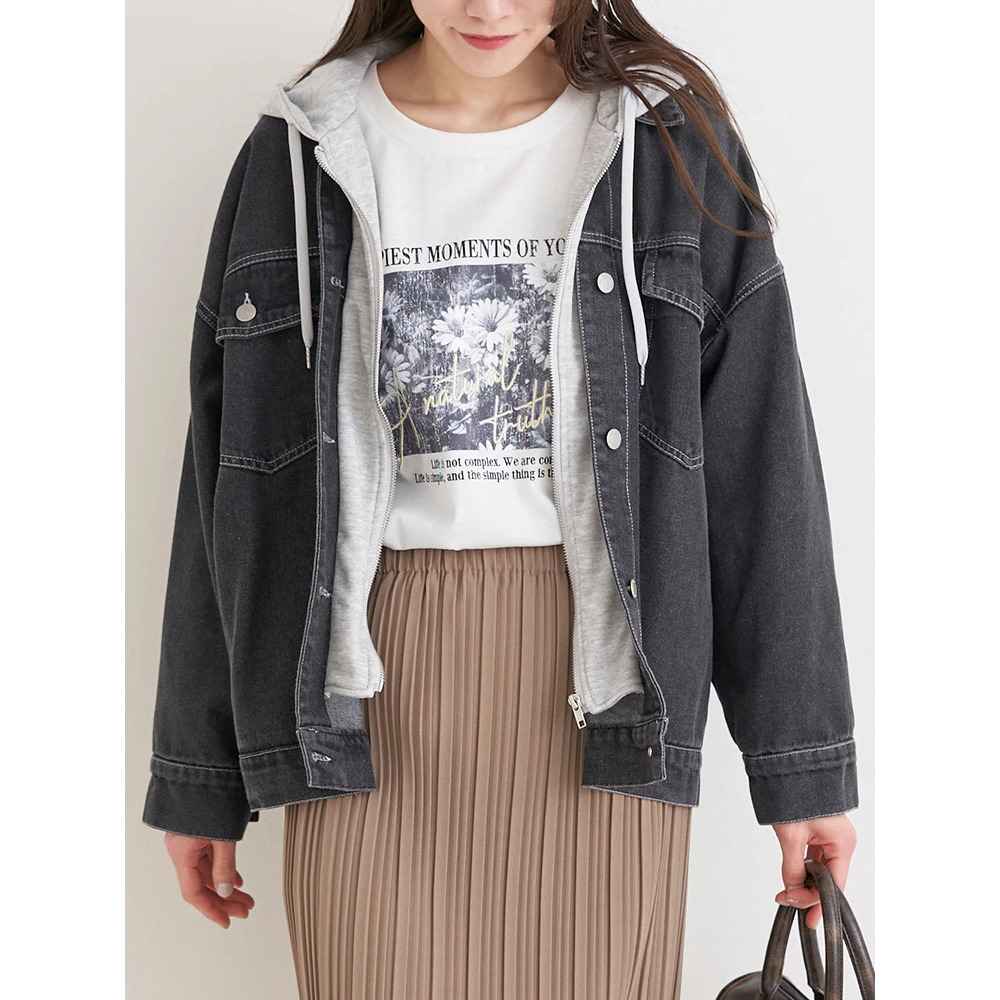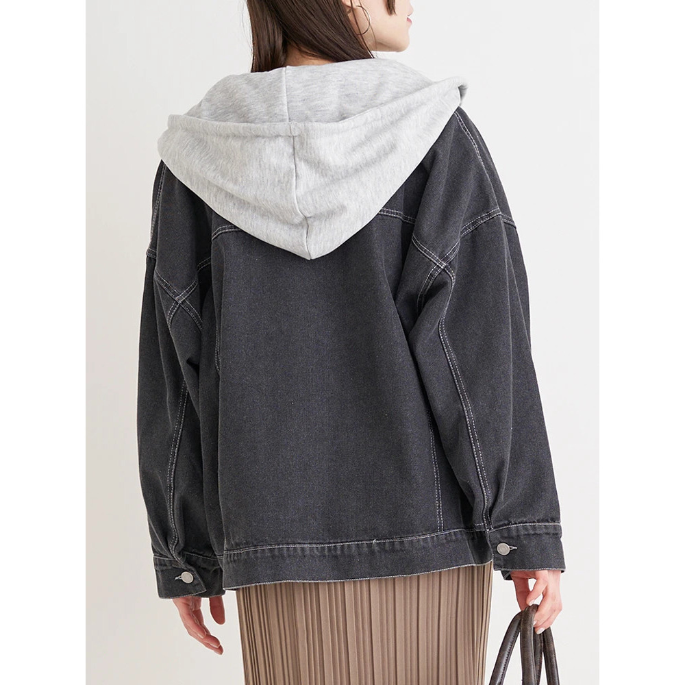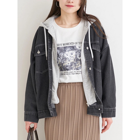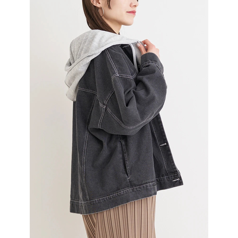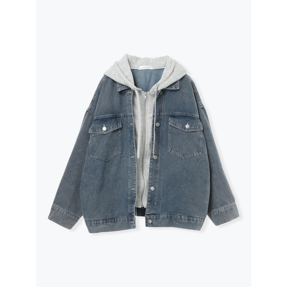 パーカーレイヤード風デニムジャケット