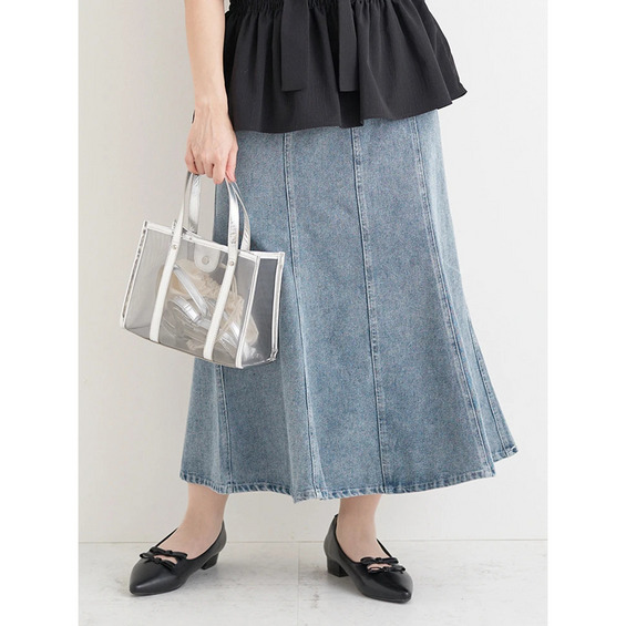 ・カジュアルな印象のデニム×マーメイドシルエットのレディなギャップがいつものコーデをこなれ感のある印象に格上げ。
