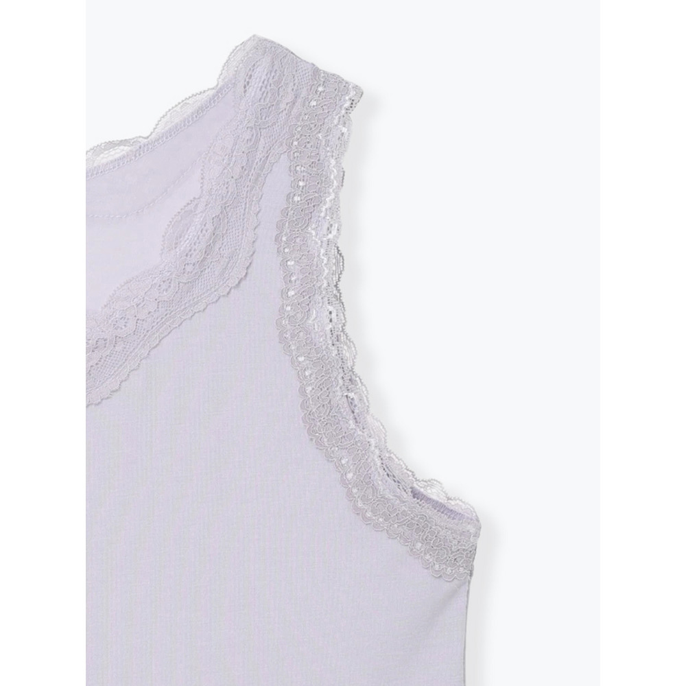 ・胸元とアームホールにあしらったレースがレイヤードスタイルにフェミニンさをプラス。
