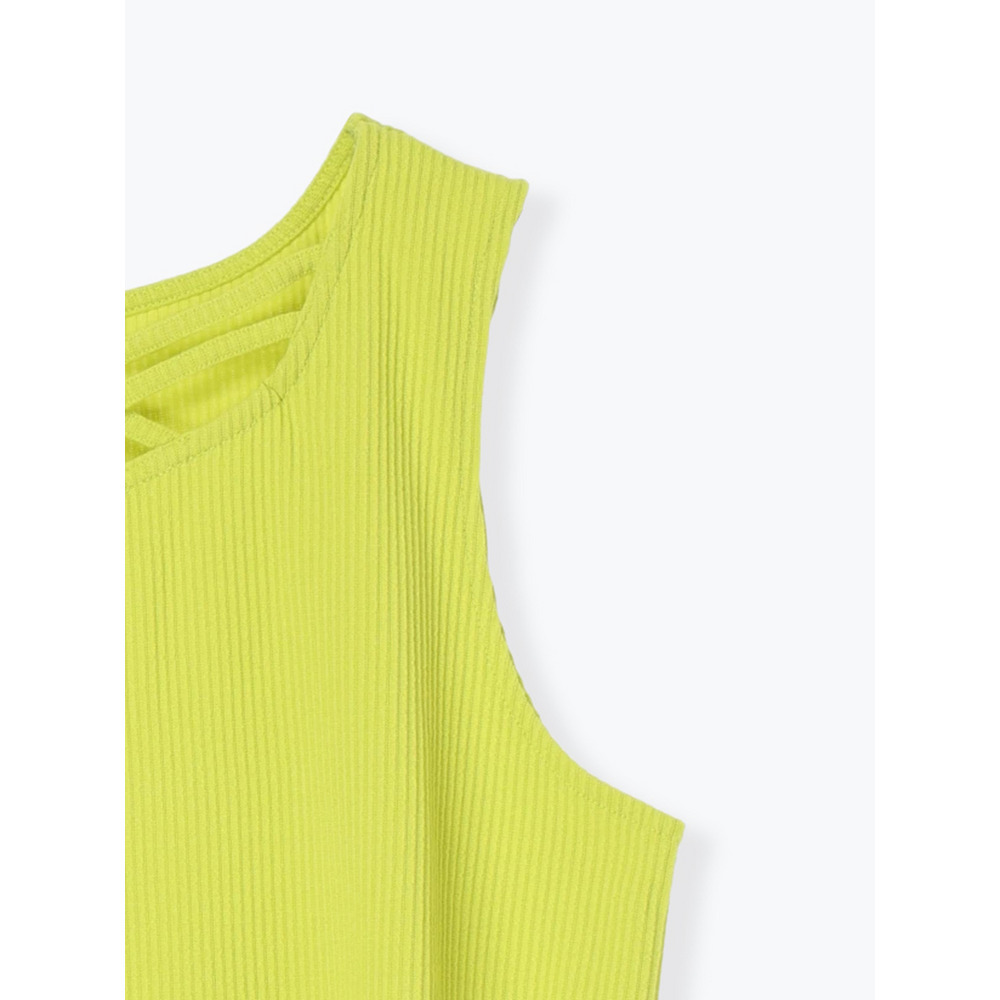 ・伸縮性のあるリブ素材でボディラインに優しくフィットし、快適な着心地。