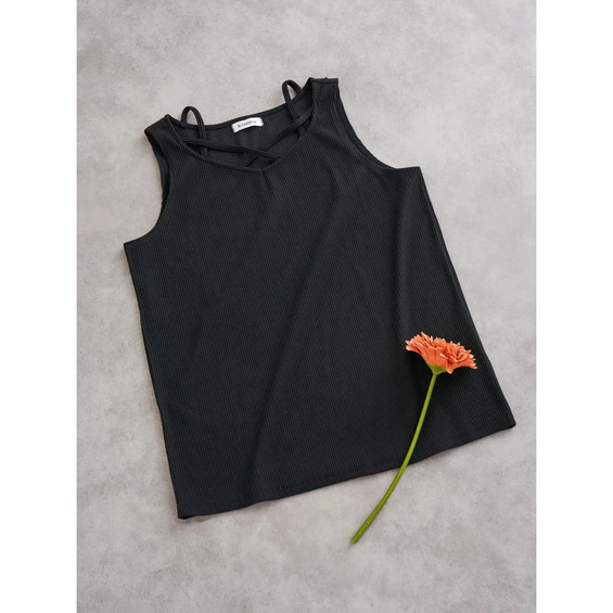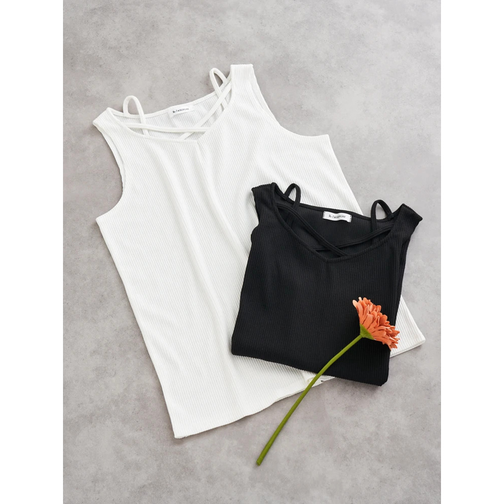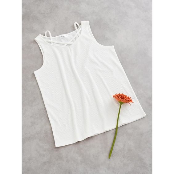 胸元のクロスデザインで周りと差をつける大人の抜け感コーデを楽しめます。
