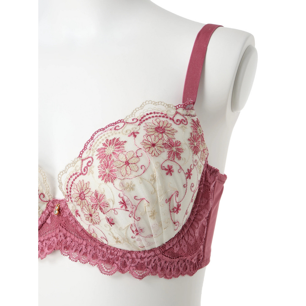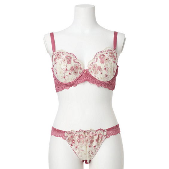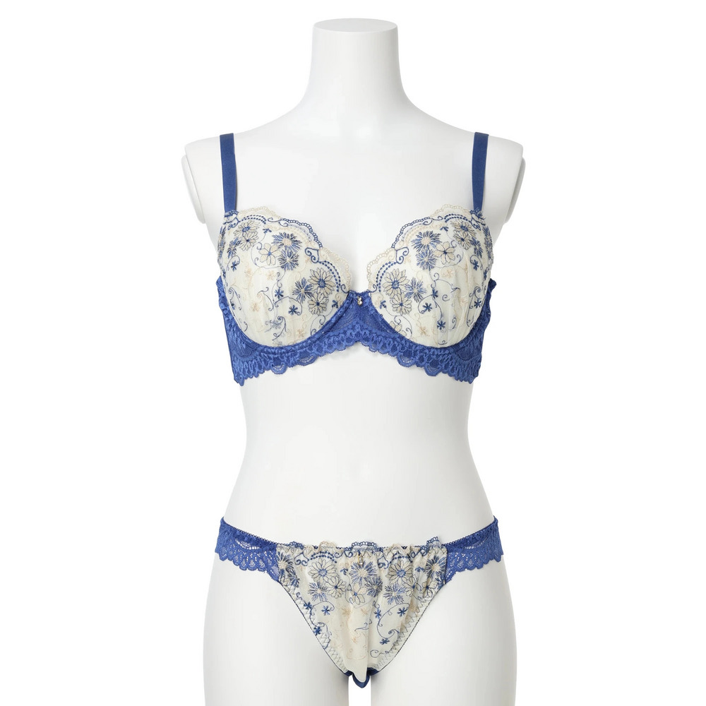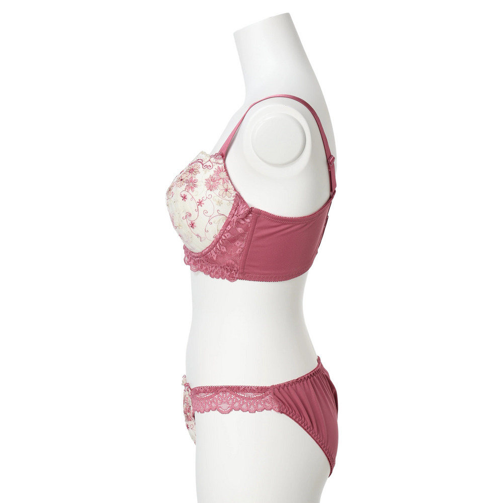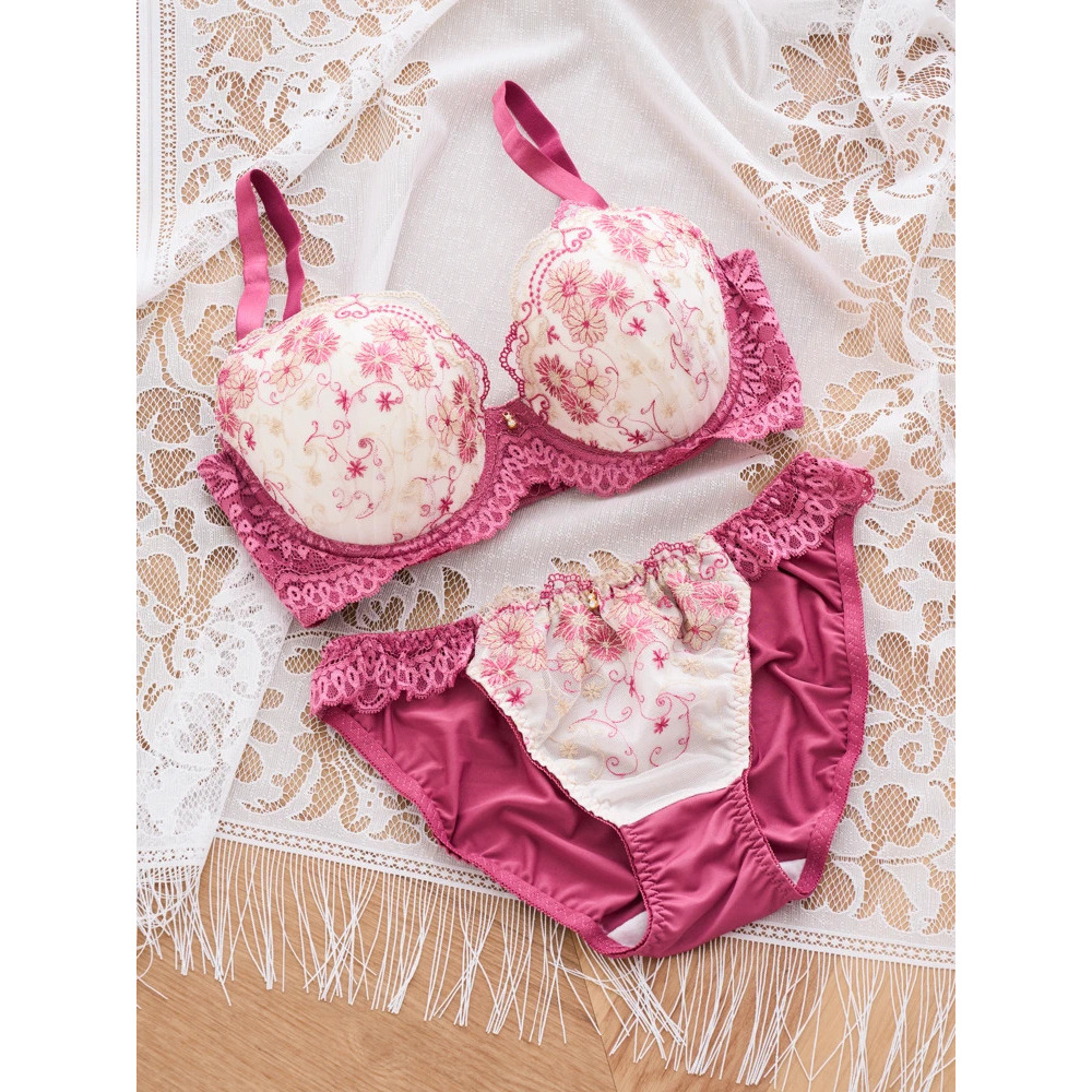 【脇高】[D85-I95]マーガレット刺繍ブラ&ショーツ(モールドカップ)