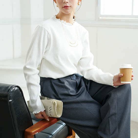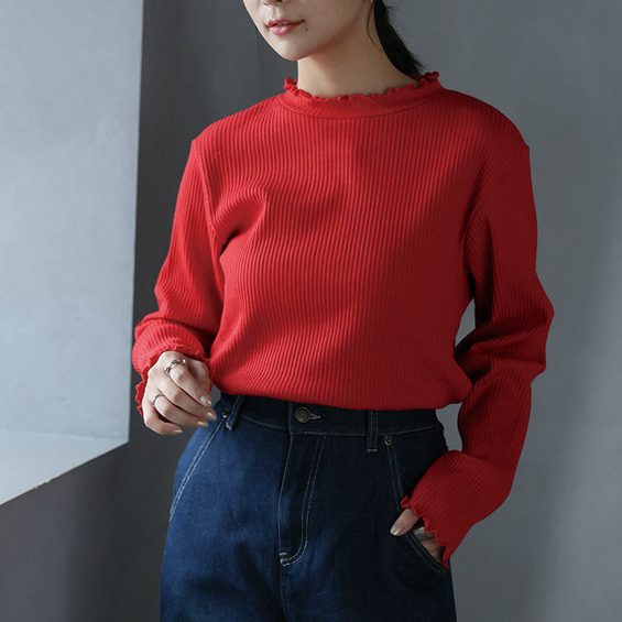 【ちょい温シリーズ】 メロウ ハイネック リブ トップス