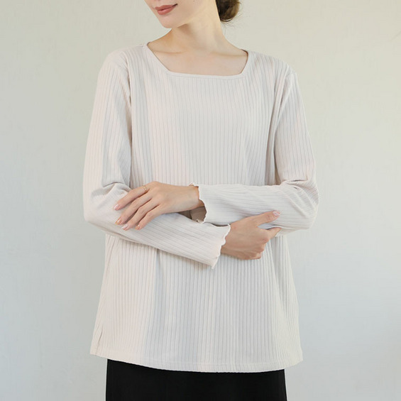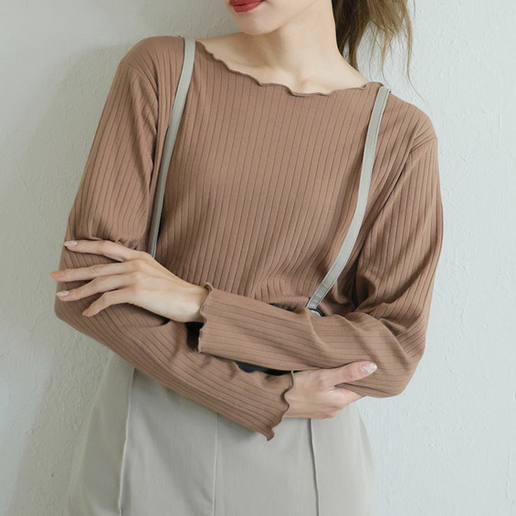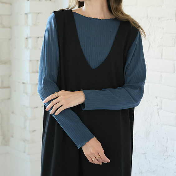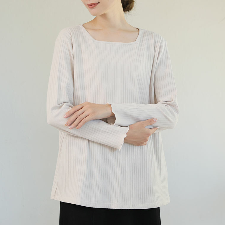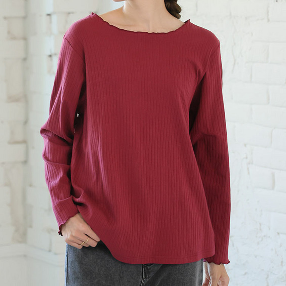 ピタピタからの解放 着やすいから着まわしたい!サイズと着心地にこだわり選べるネック 綿混メロウリブトップス