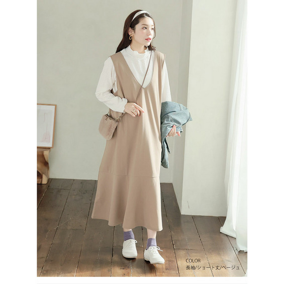 新色・袖丈追加!! 丈と袖丈が選べる! 膨れトップス × マーメイド ジャンスカ 2点セット