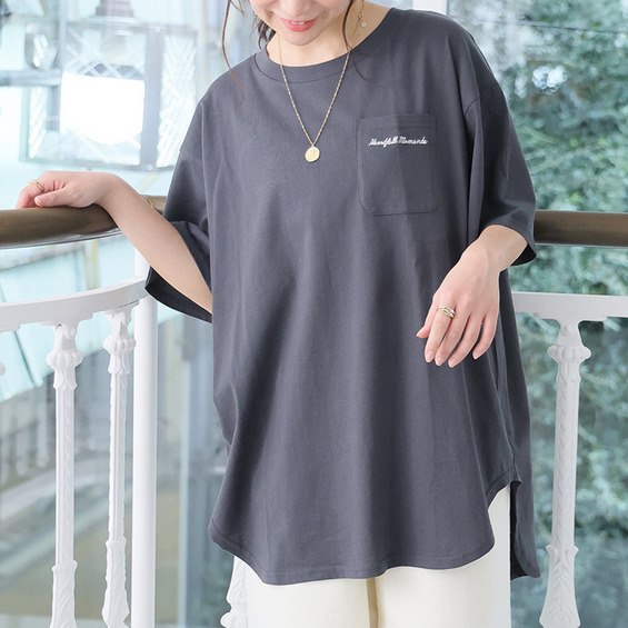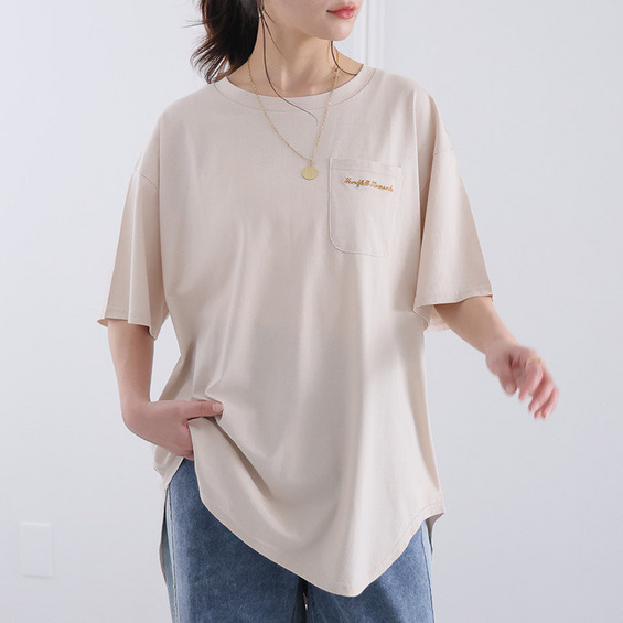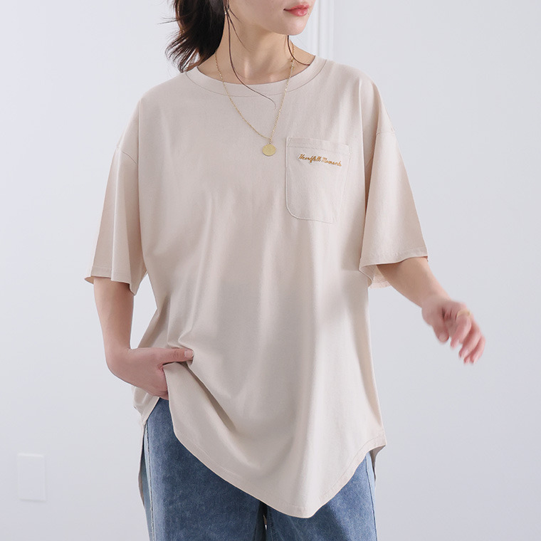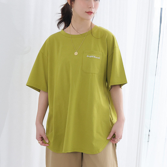 新色追加!! もっと楽ちん! さらっと涼やか 裾ラウンド チュニック丈 Tシャツ