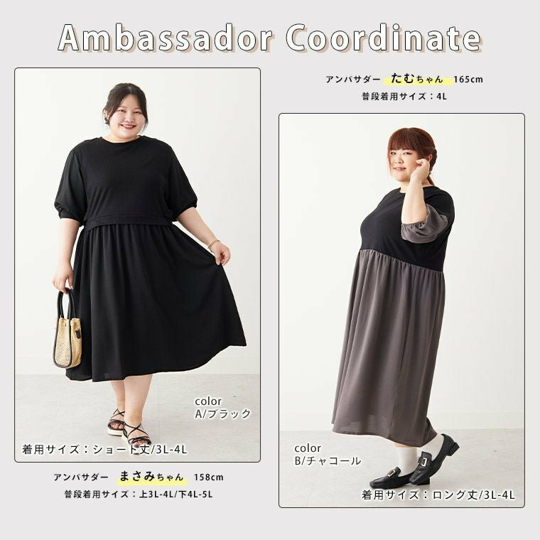 着痩せ魅せ! 1枚でコーデ考えずに完成 ドッキング ワンピース