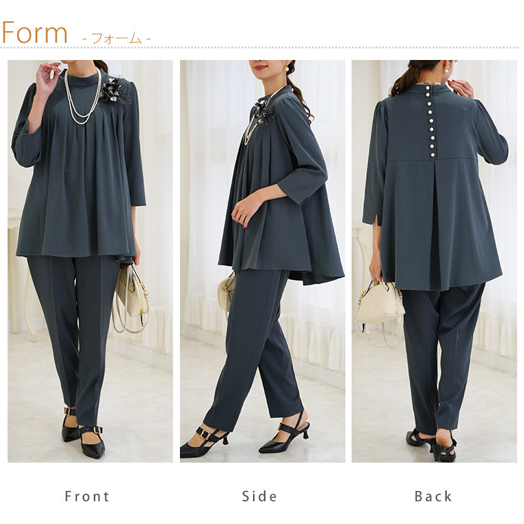 素材 〇 トップス 本体:ポリエステル96% ポリウレタン4% 〇 ボトムス 表地:ポリエステル96% ポリウレタン4% 裏地:ポリエステル100%