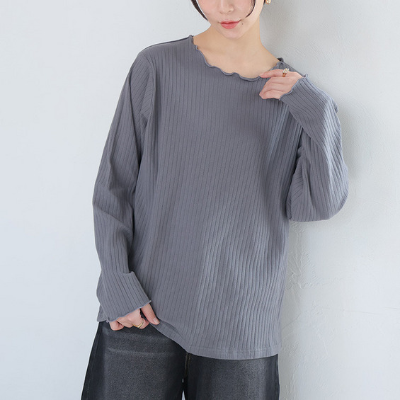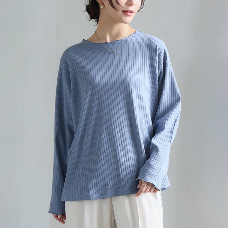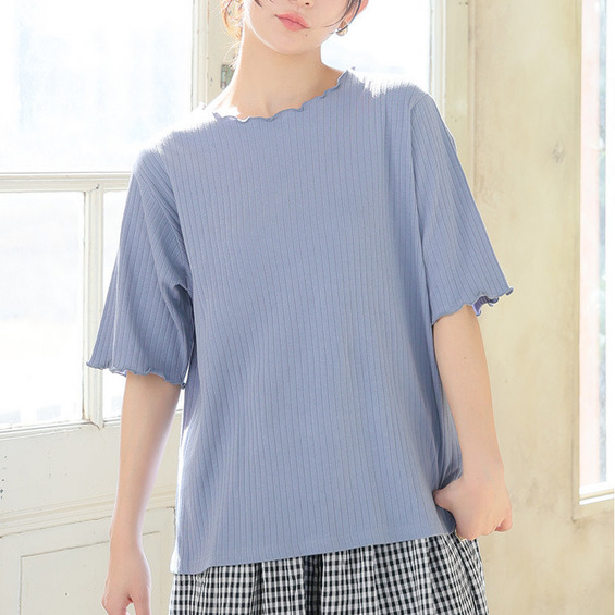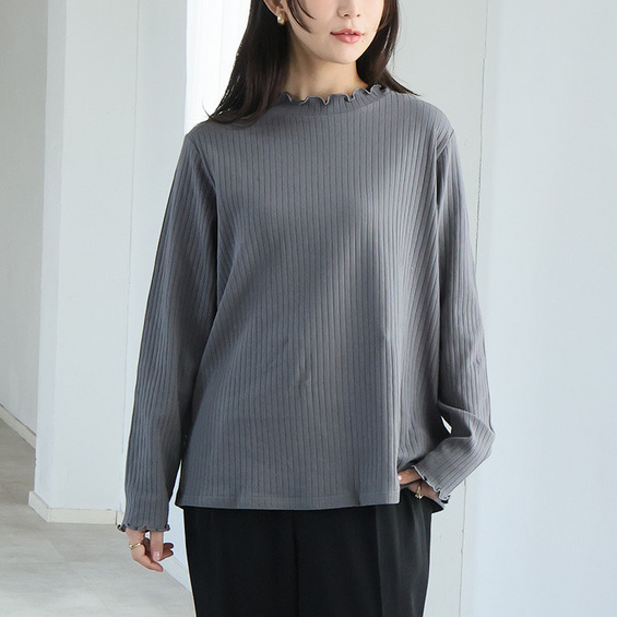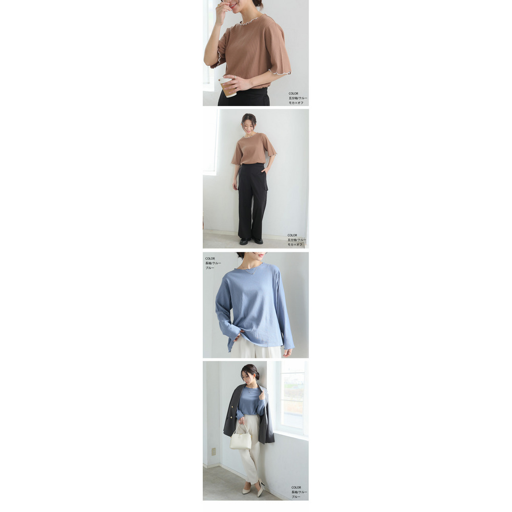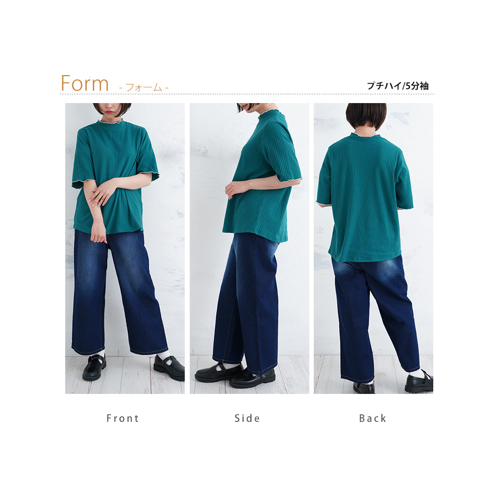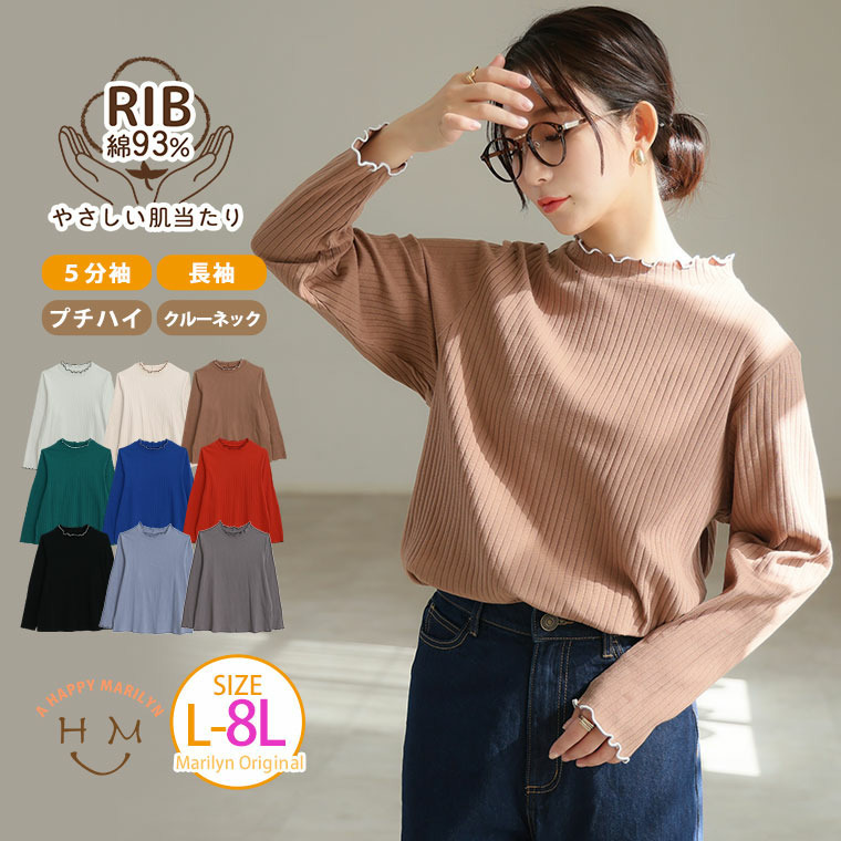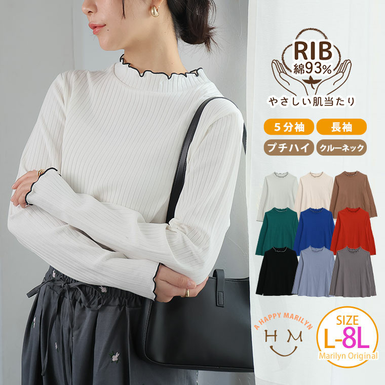 綿タッチで極上の着心地 五分袖/長袖・クルー/プチハイネックが選べる テレコ リブ トップス