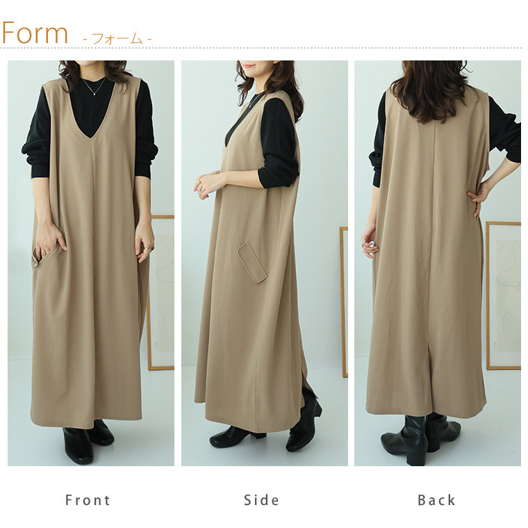 ”楽かわ”シリーズ!すとんとIラインで着痩せ ポケット付き Vジャンスカ