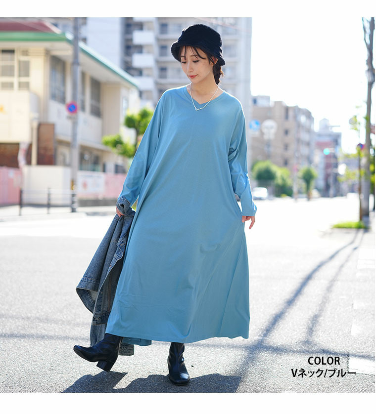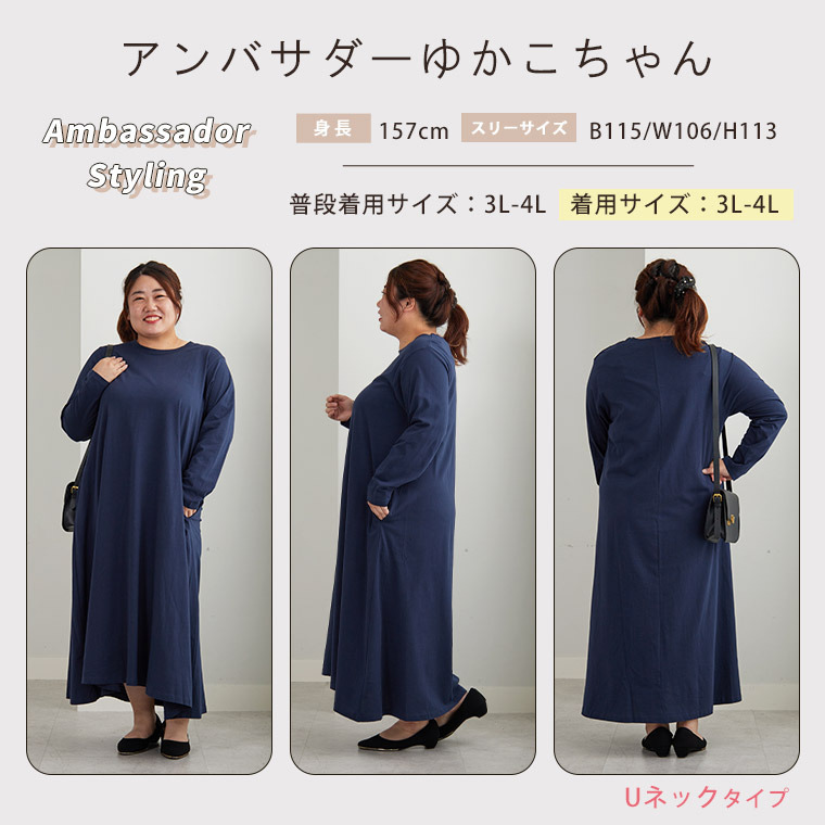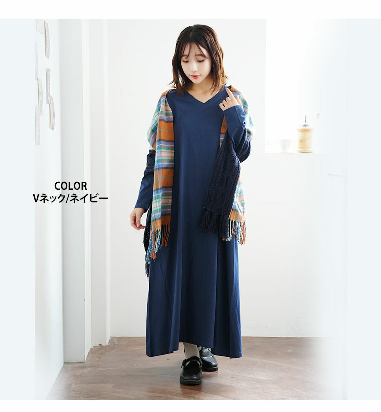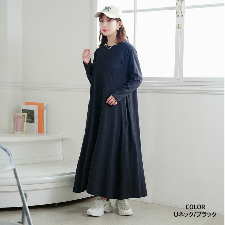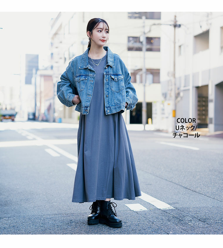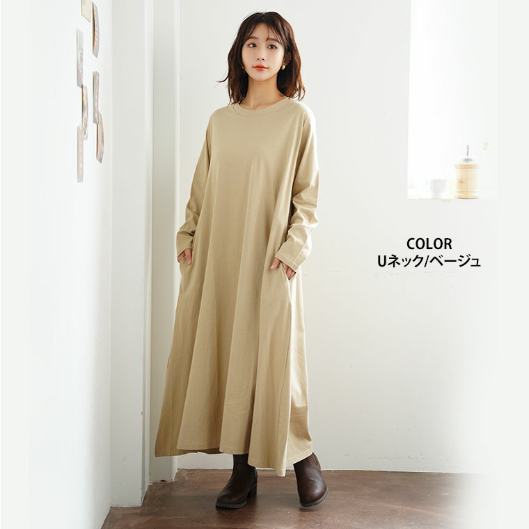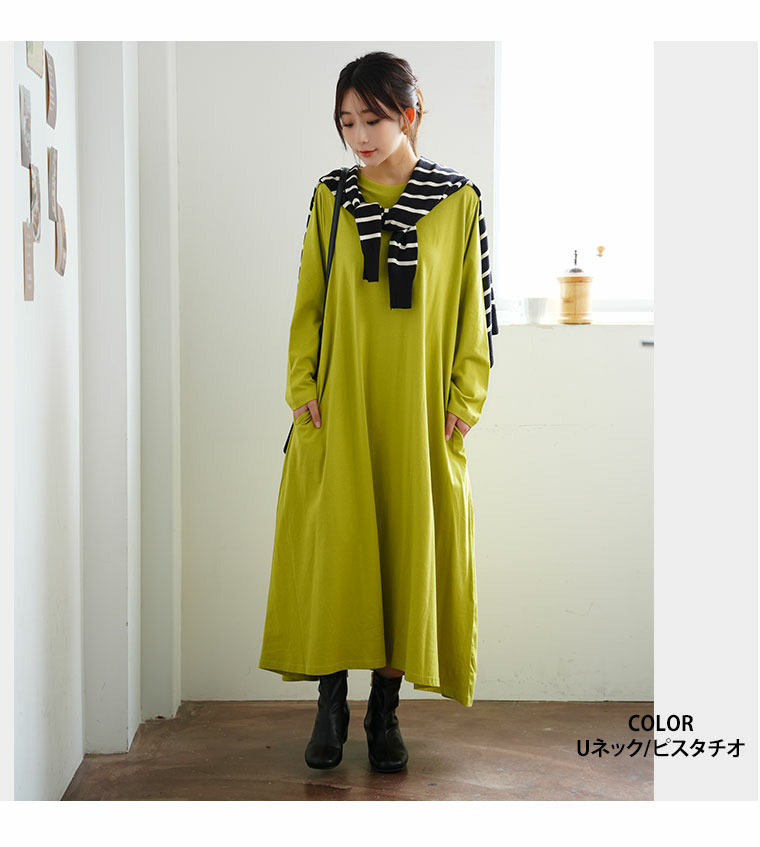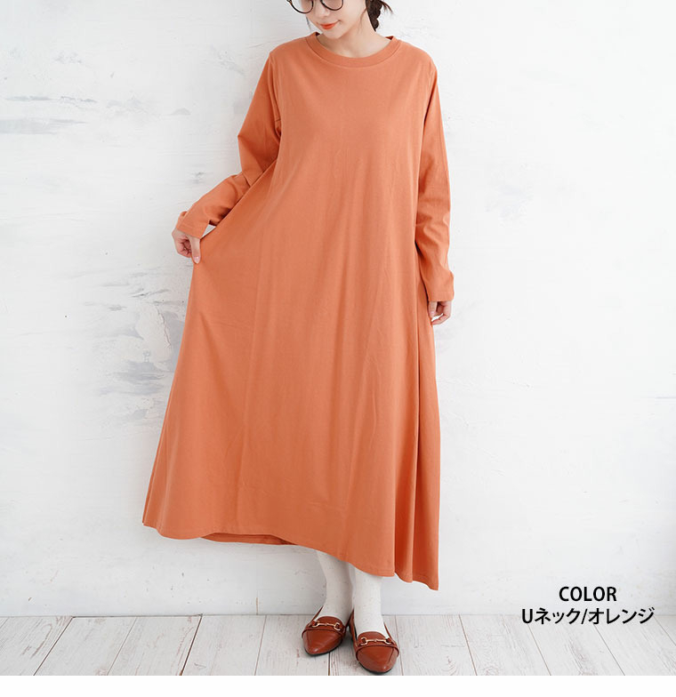 USAコットン ネックが選べる Aライン ワンピース