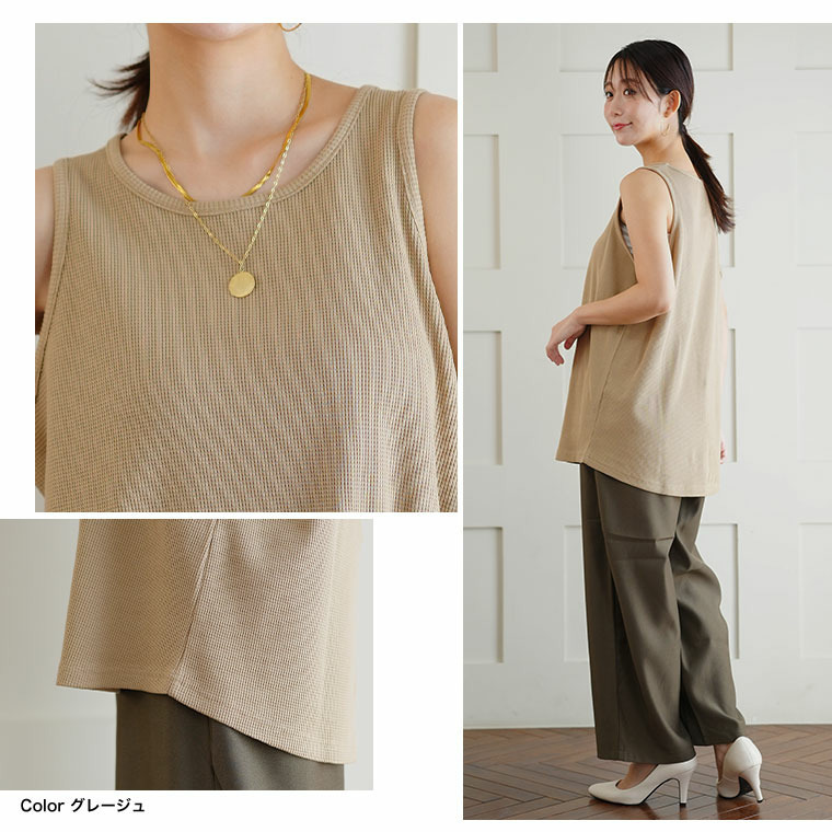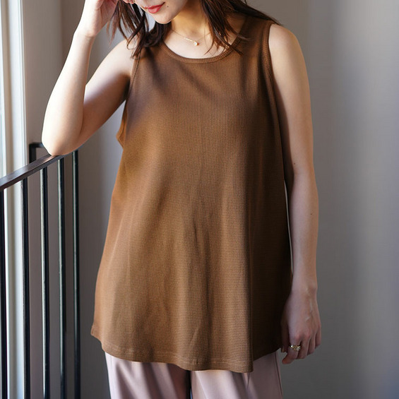 • 呼吸するコットン100% 楽のび ワッフルシリーズ ゆったりタンクトップ18