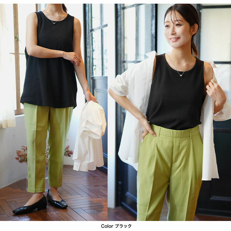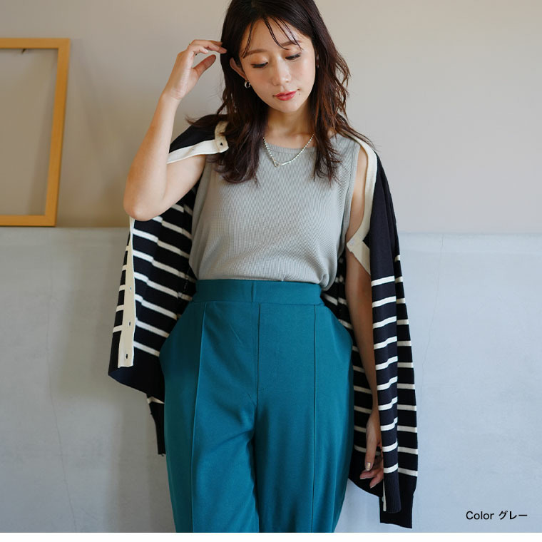 • 呼吸するコットン100% 楽のび ワッフルシリーズ ゆったりタンクトップ17