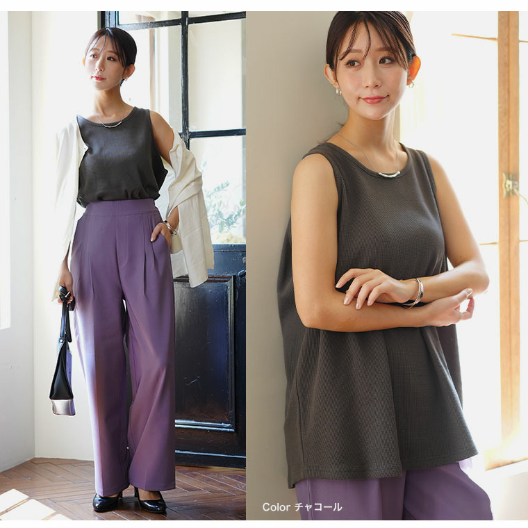 • 呼吸するコットン100% 楽のび ワッフルシリーズ ゆったりタンクトップ13