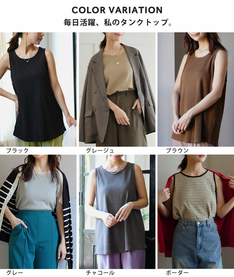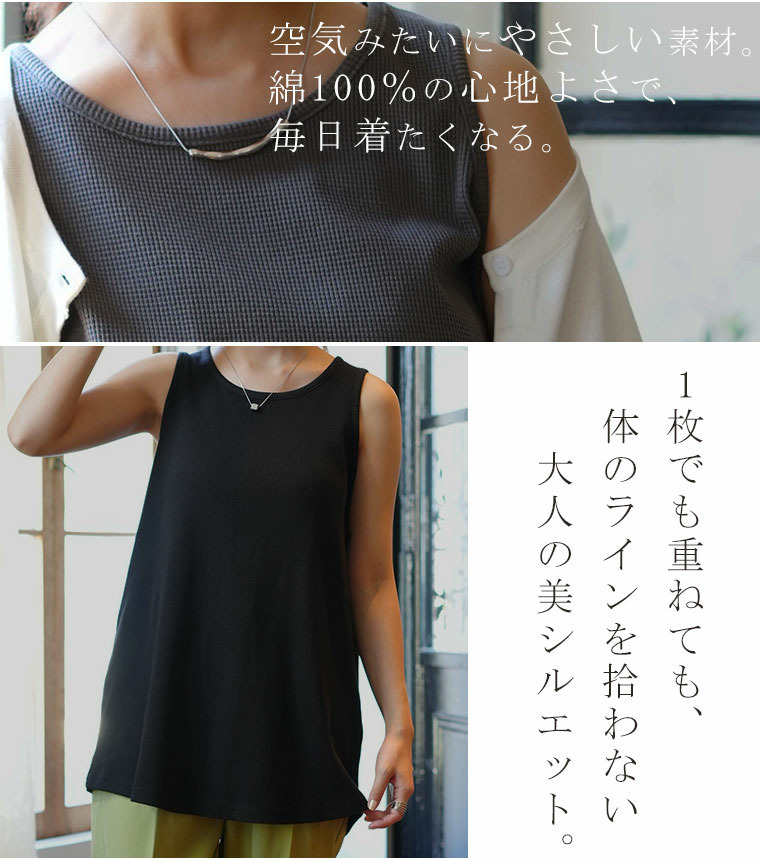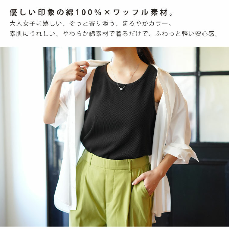 • 呼吸するコットン100% 楽のび ワッフルシリーズ ゆったりタンクトップ10