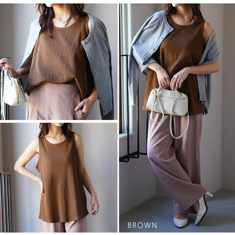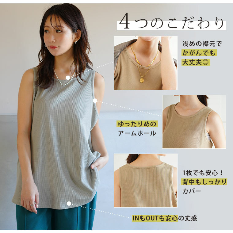 • 呼吸するコットン100% 楽のび ワッフルシリーズ ゆったりタンクトップ19