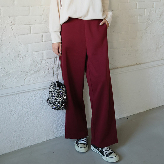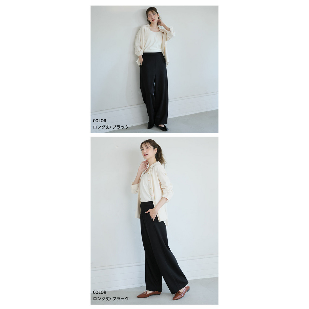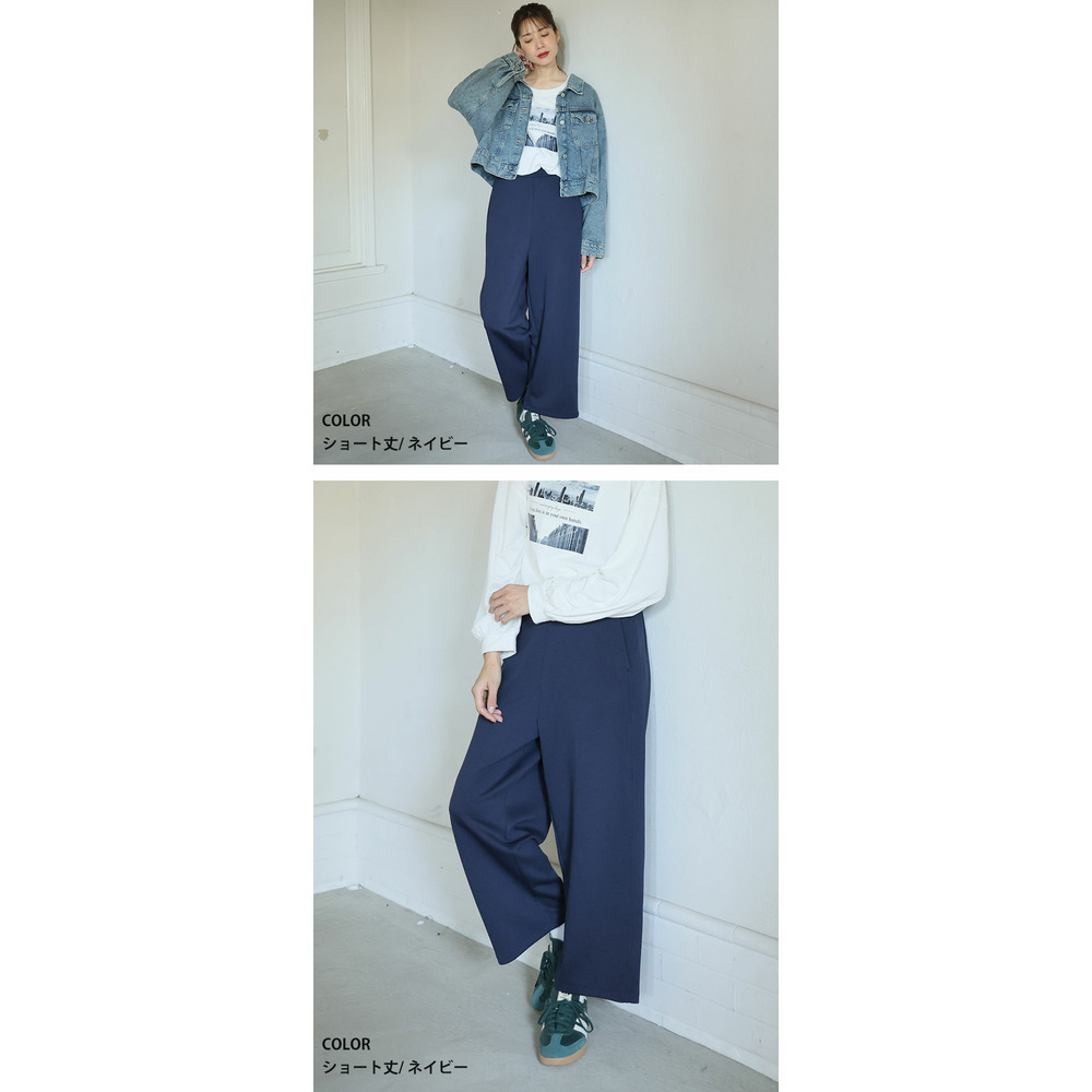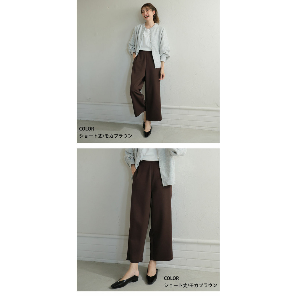 • 丈が選べる 脚痩せ ポンチ カーブパンツ ストレッチ ワイドパンツ24