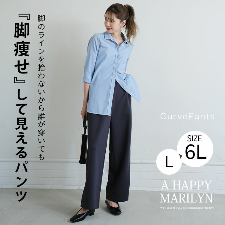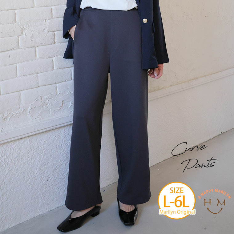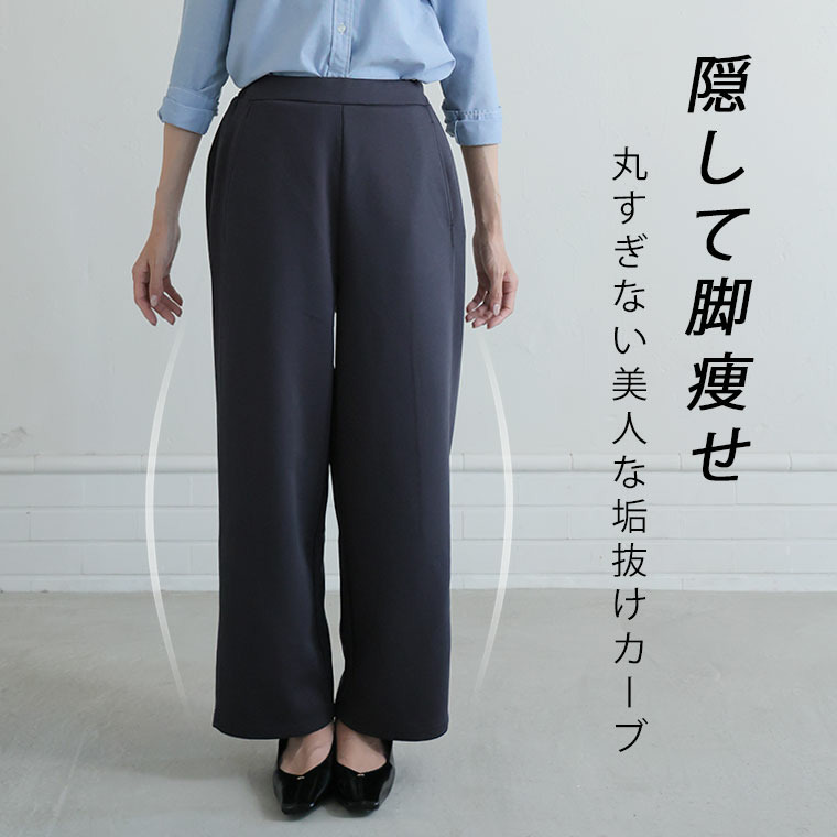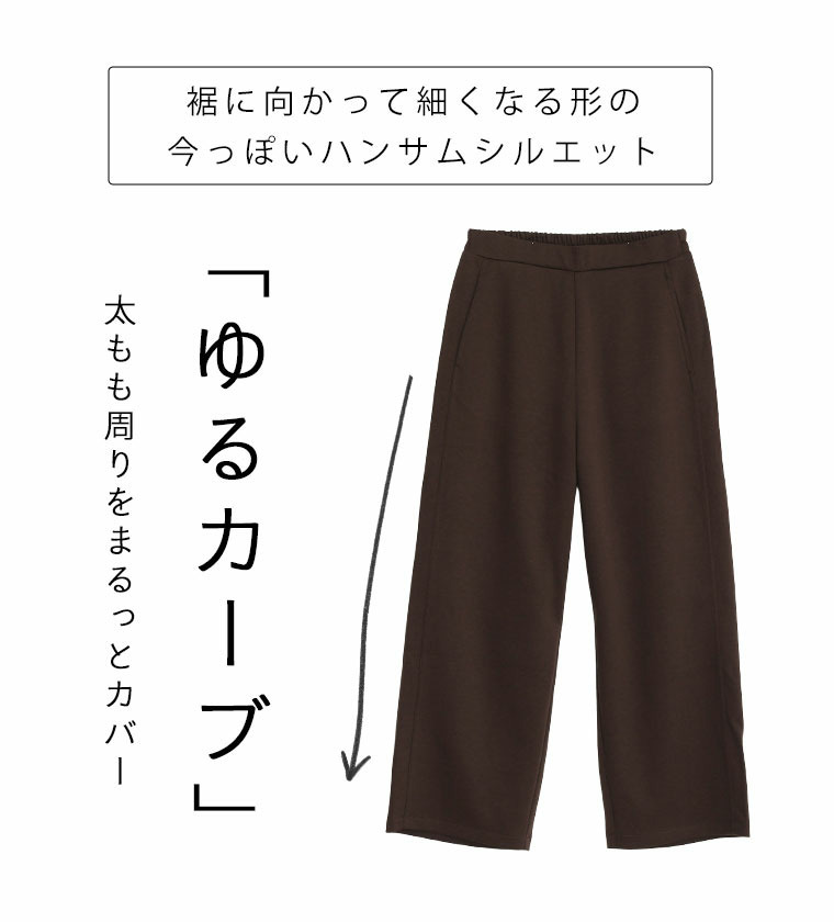 丈が選べる 脚痩せ ポンチ カーブパンツ ストレッチ ワイドパンツ