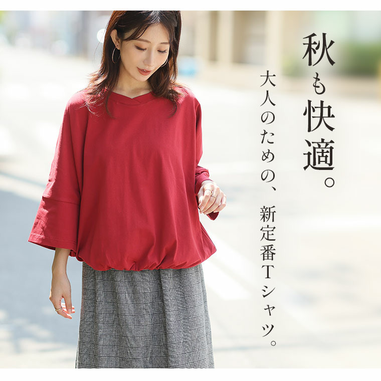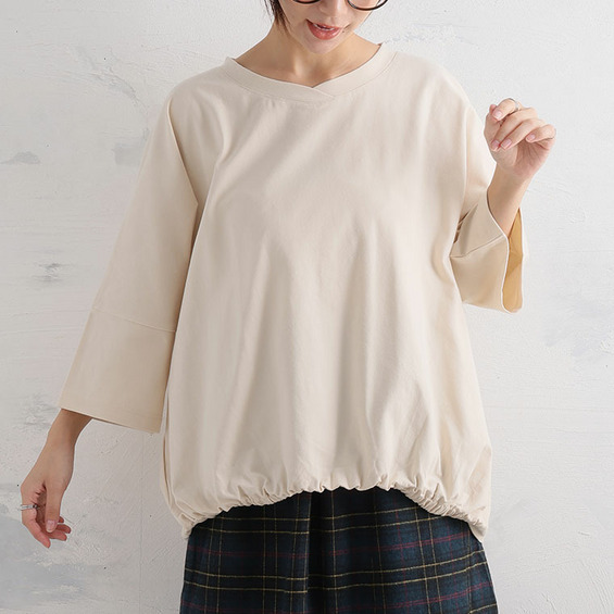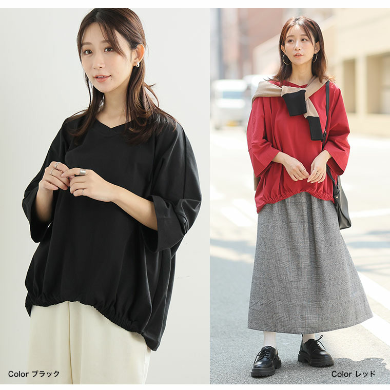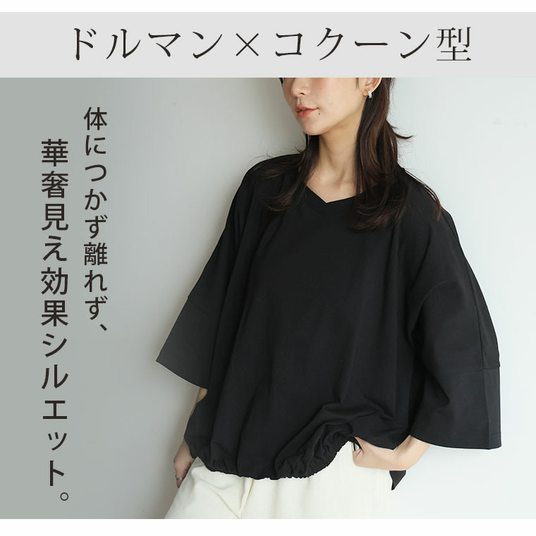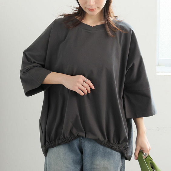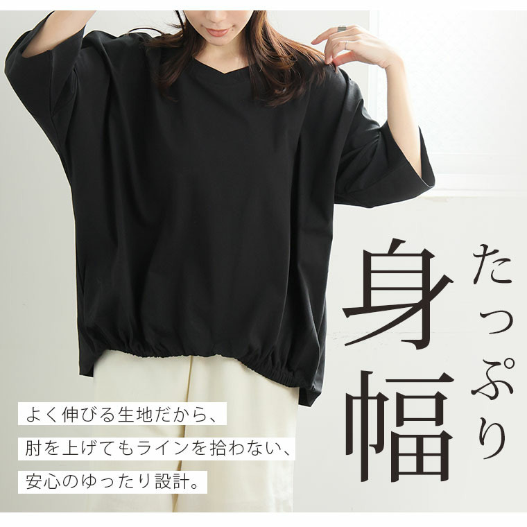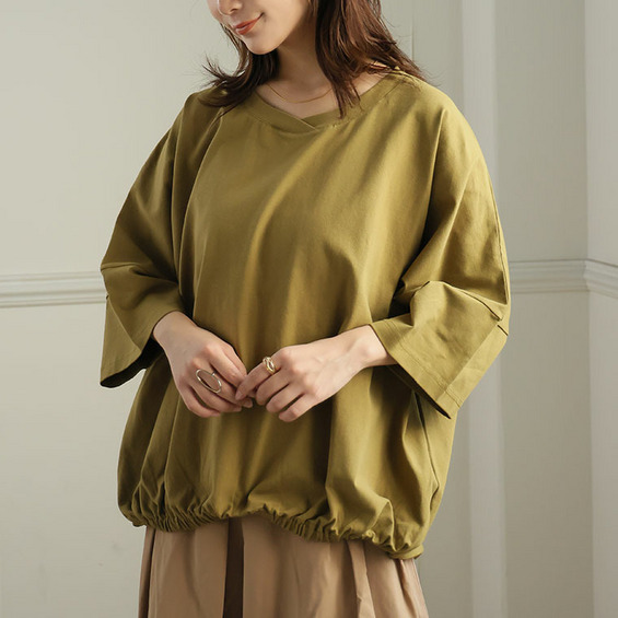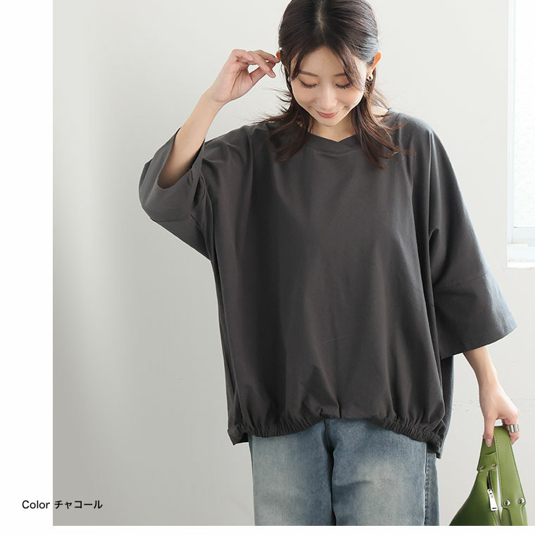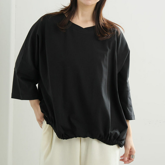 【エアリコTシャツシリーズ】 裾ゴム 浅Vネック トップス