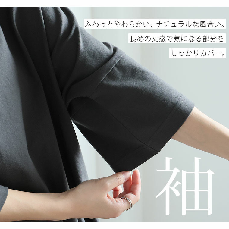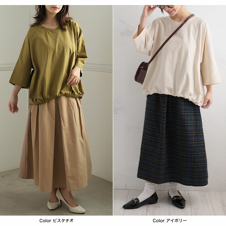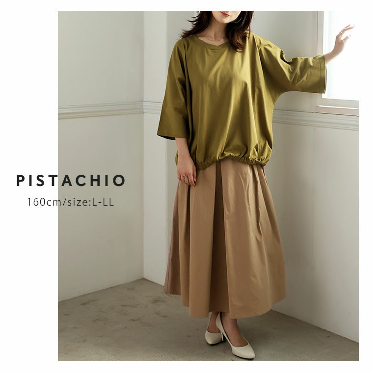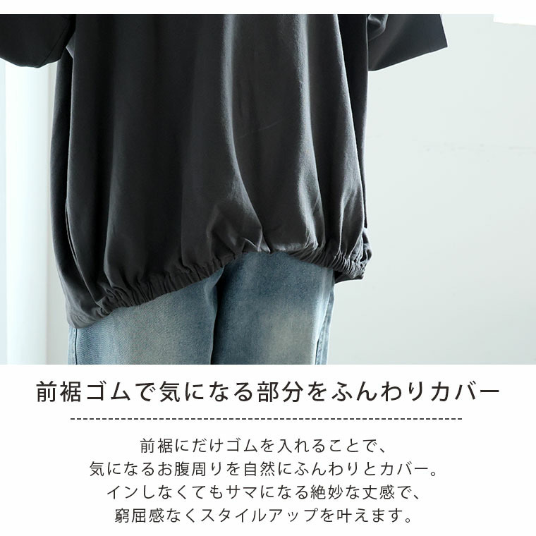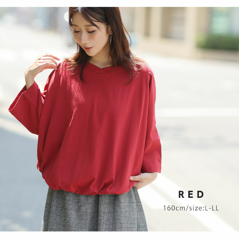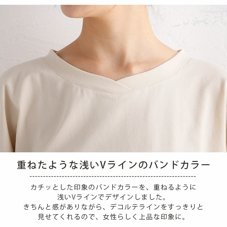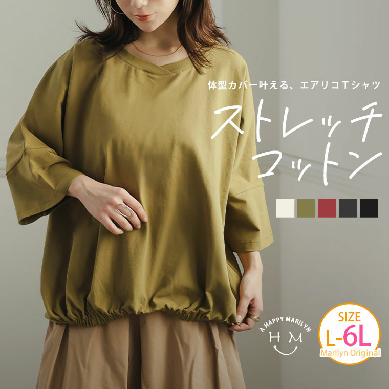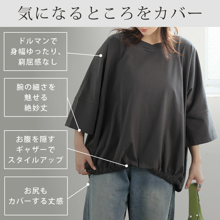 【エアリコTシャツシリーズ】 裾ゴム 浅Vネック トップス