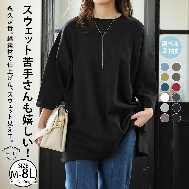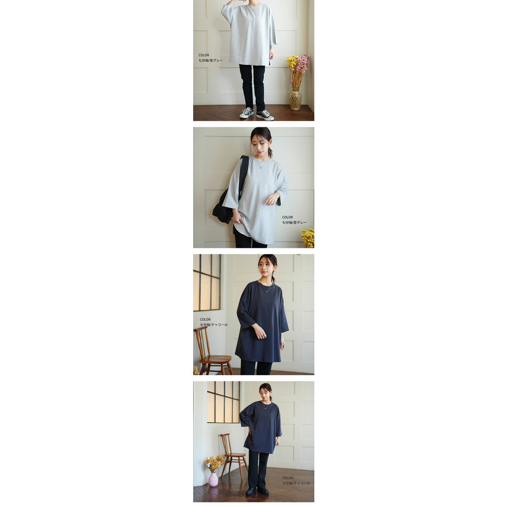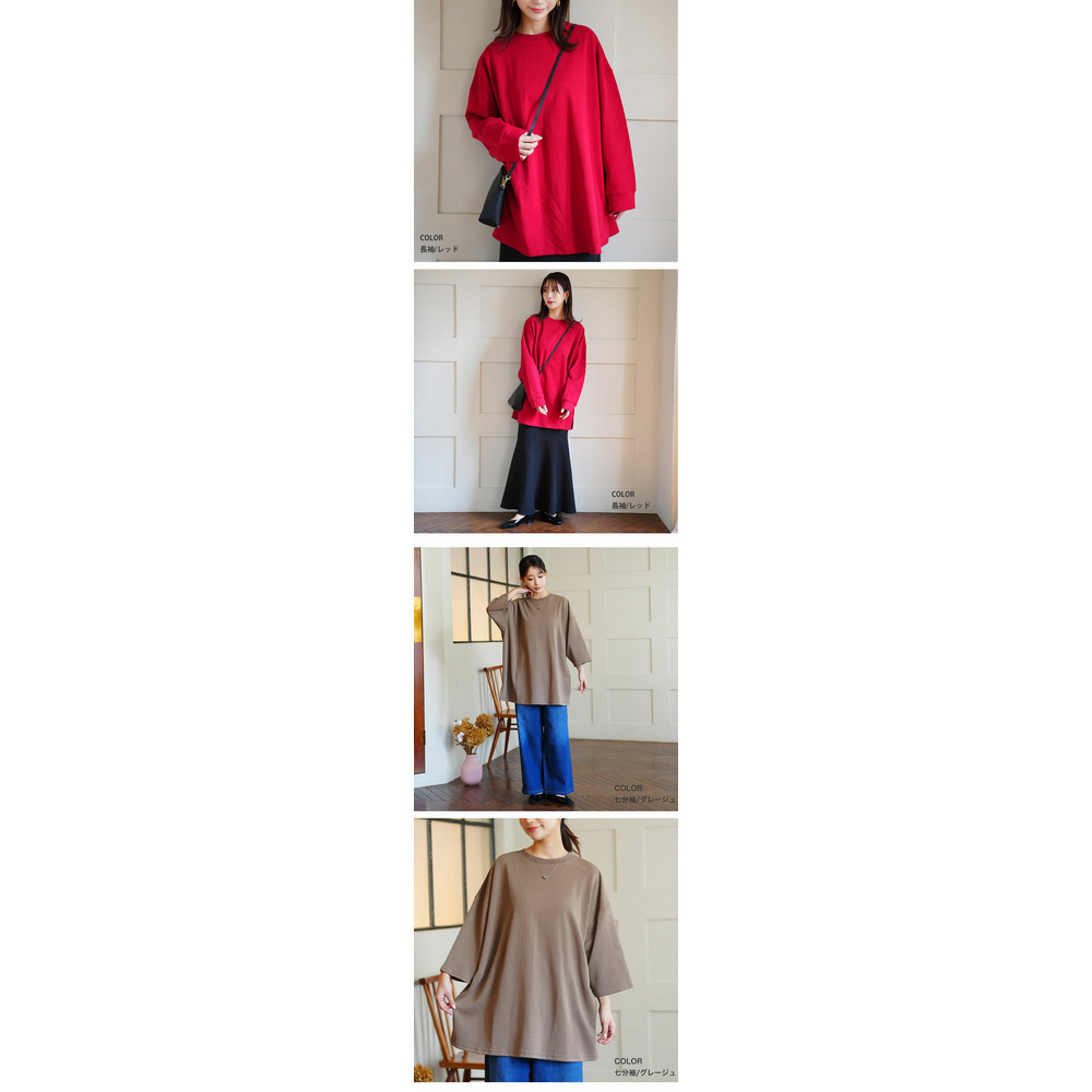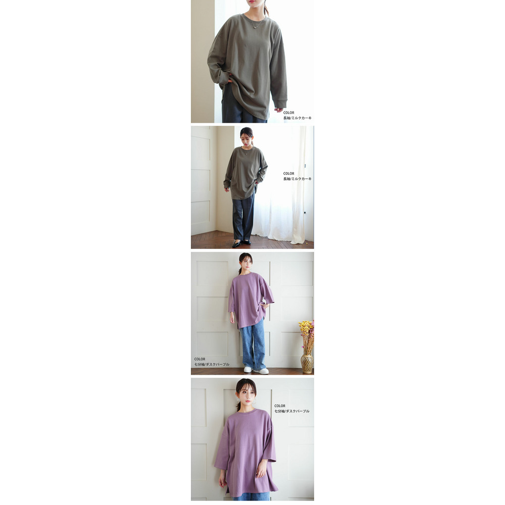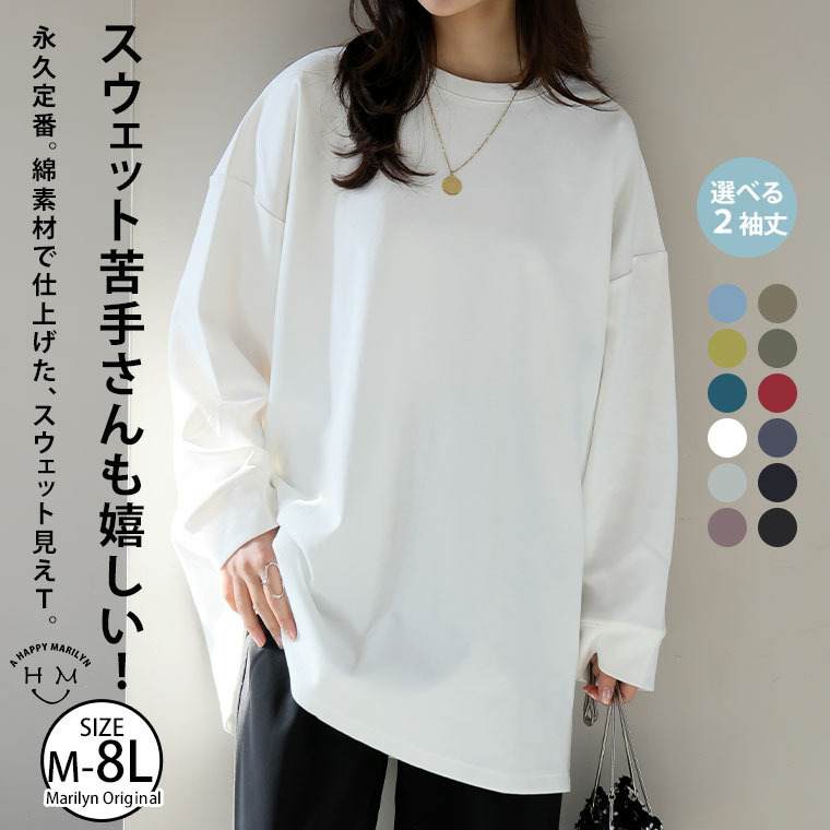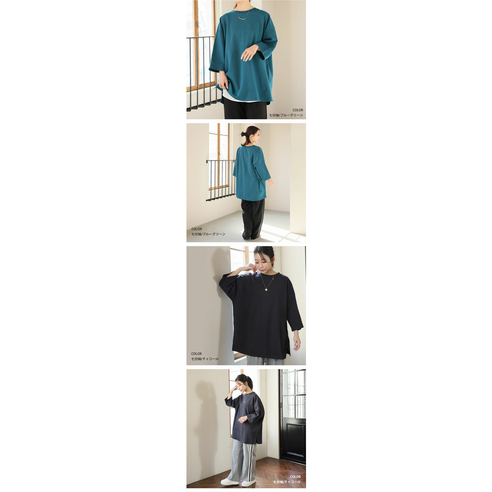 新色追加!スウェット苦手さんも嬉しい! 綿 トレーナーライク Tシャツ コットン ロンT 長袖 七分袖 ビッグシルエット