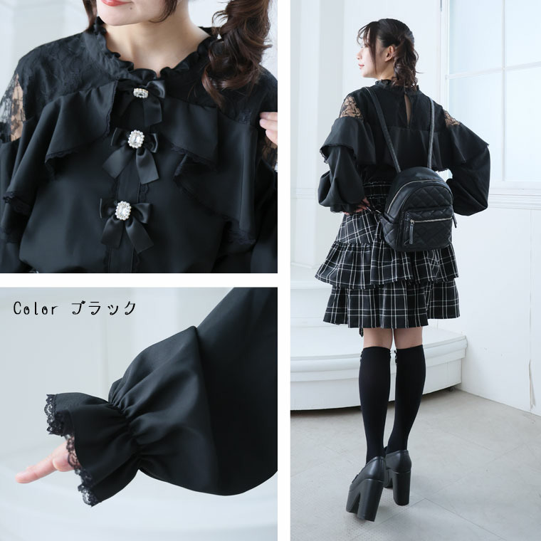 • 地雷系 肩レース ハート パールボタン ブラウス12
