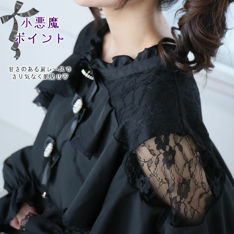 • 地雷系 肩レース ハート パールボタン ブラウス1