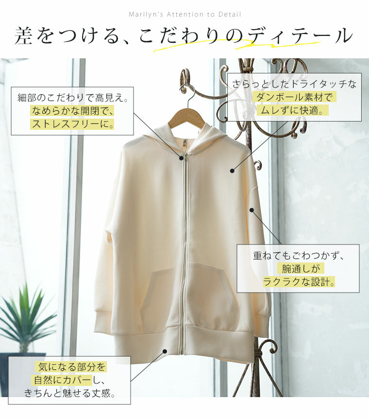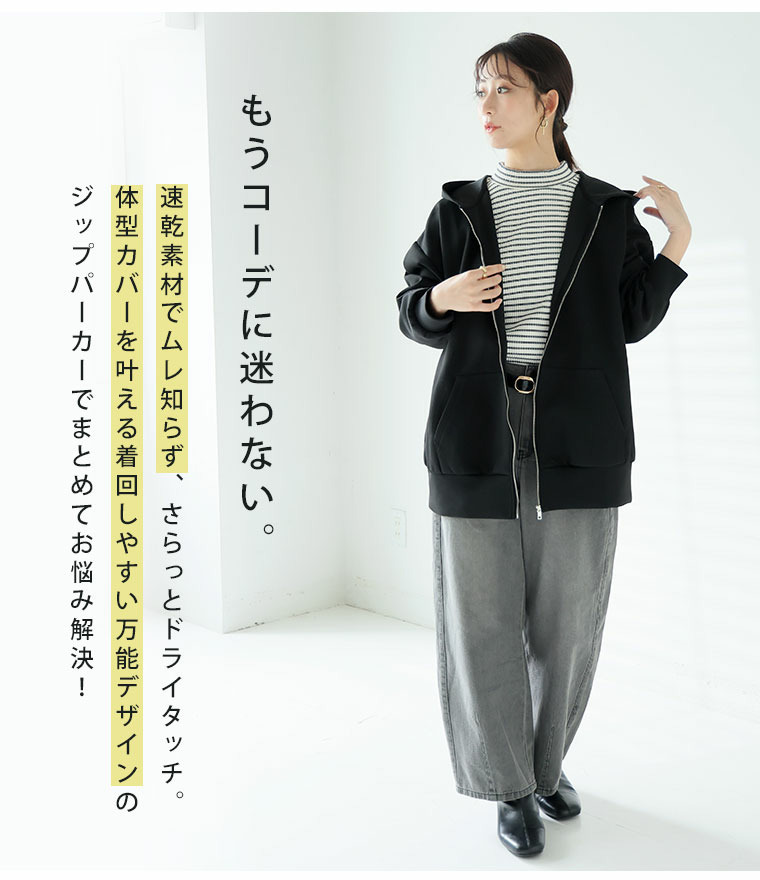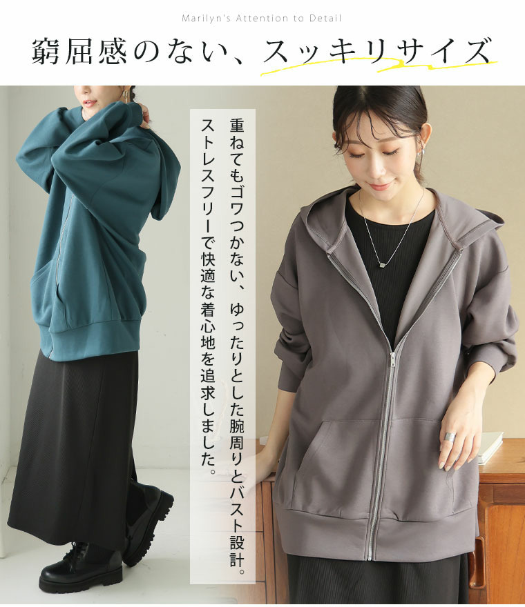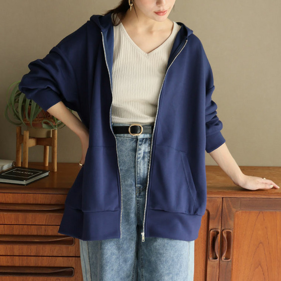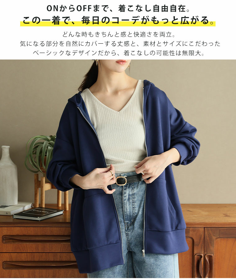 いつだって綺麗!ムレにくい!! なめらかさらり 美人な ダンボール ジップパーカー スウェット