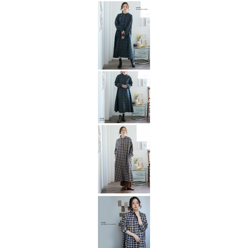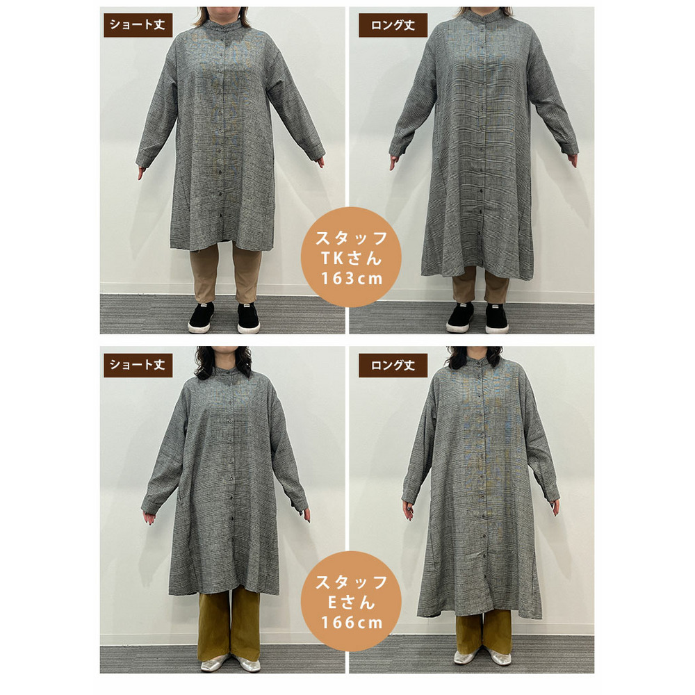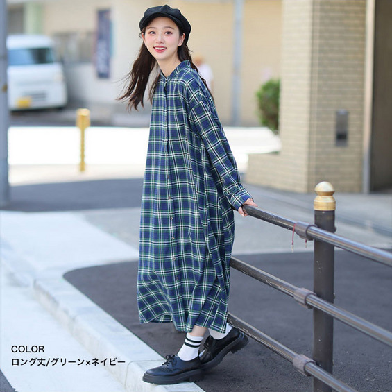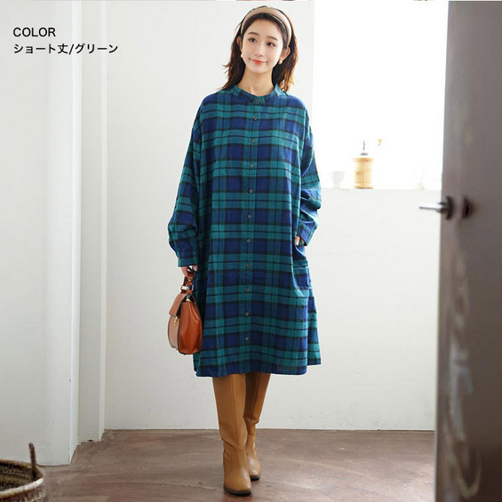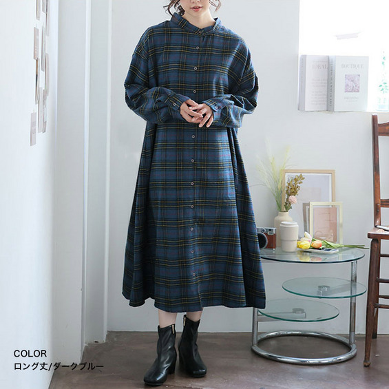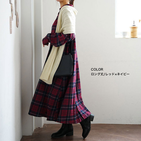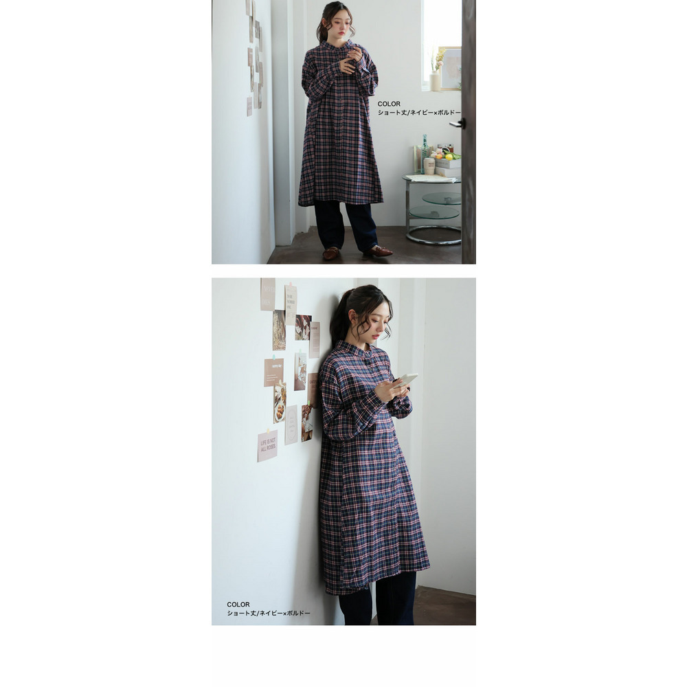 身長別選べる2丈 フランネル チェック 細魅せ シャツワンピース