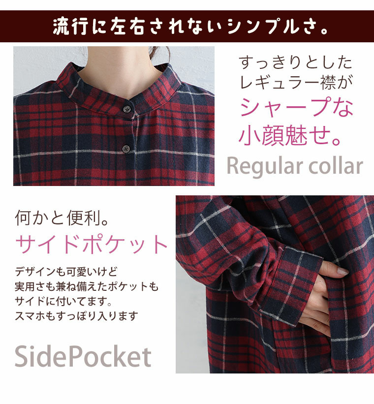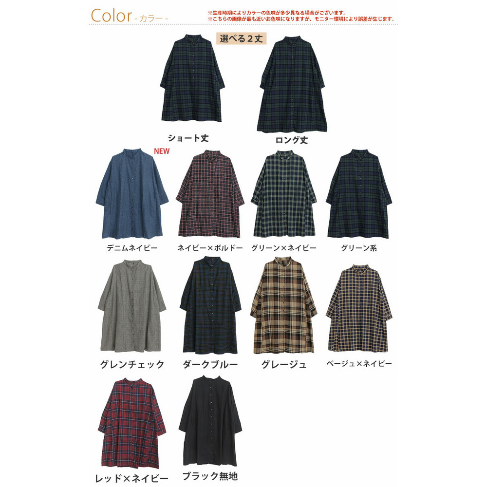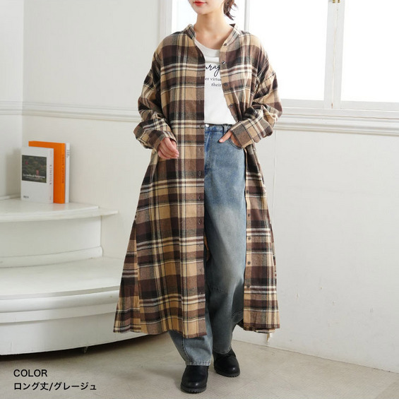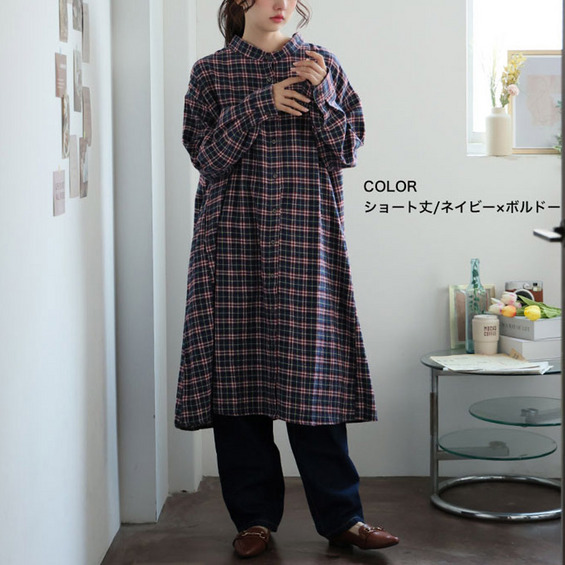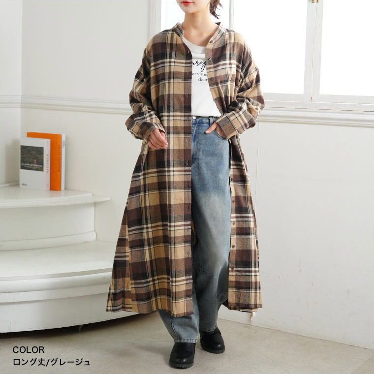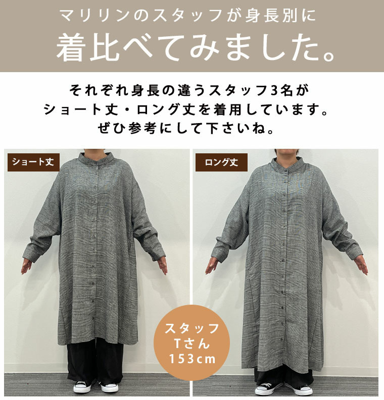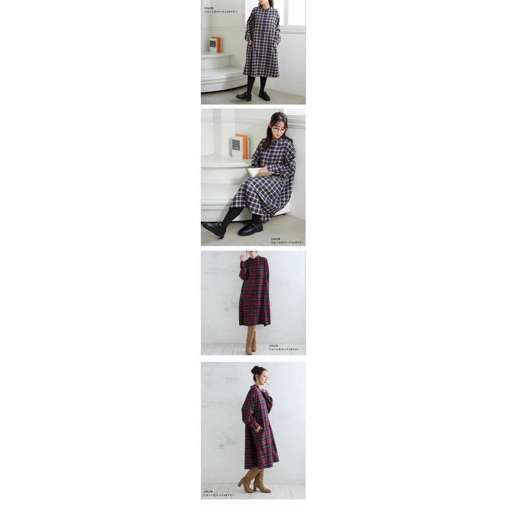 身長別選べる2丈 フランネル チェック 細魅せ シャツワンピース