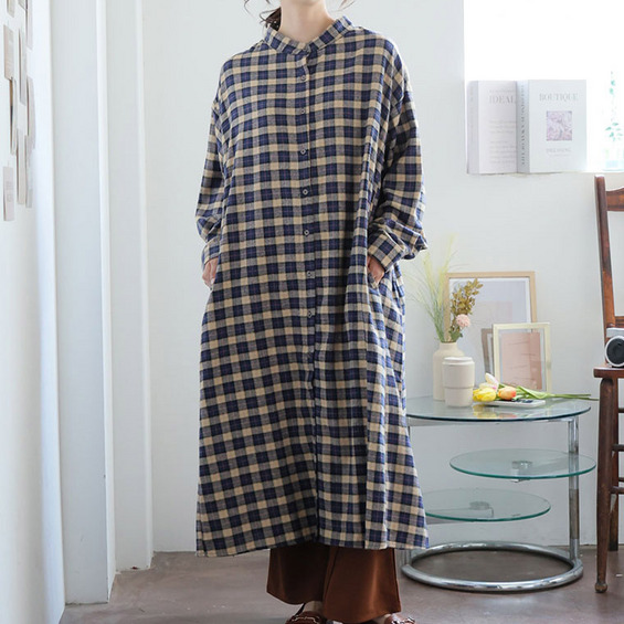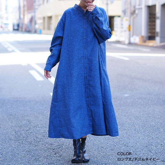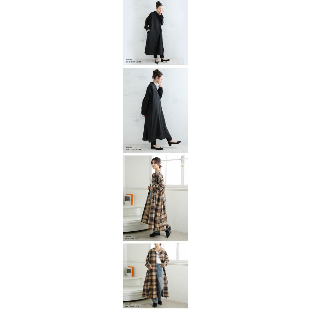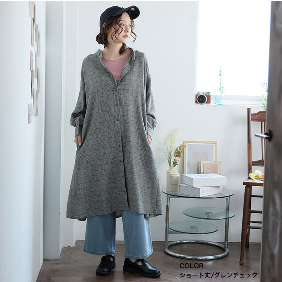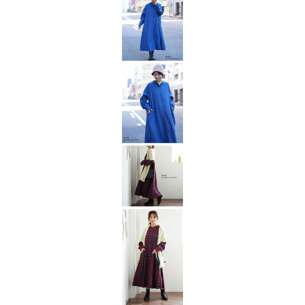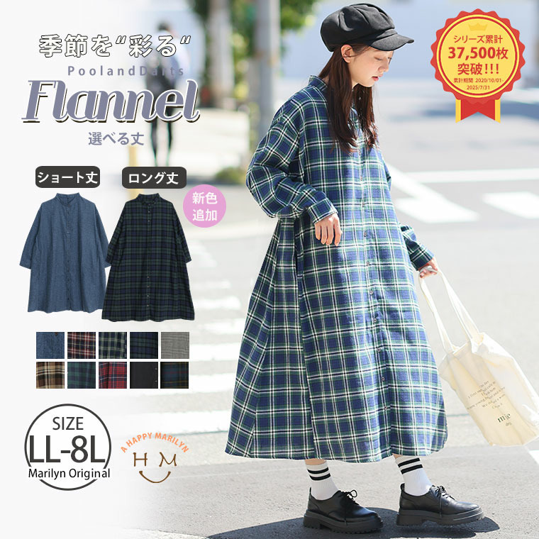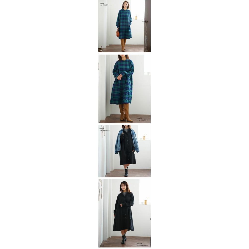 身長別選べる2丈 フランネル チェック 細魅せ シャツワンピース