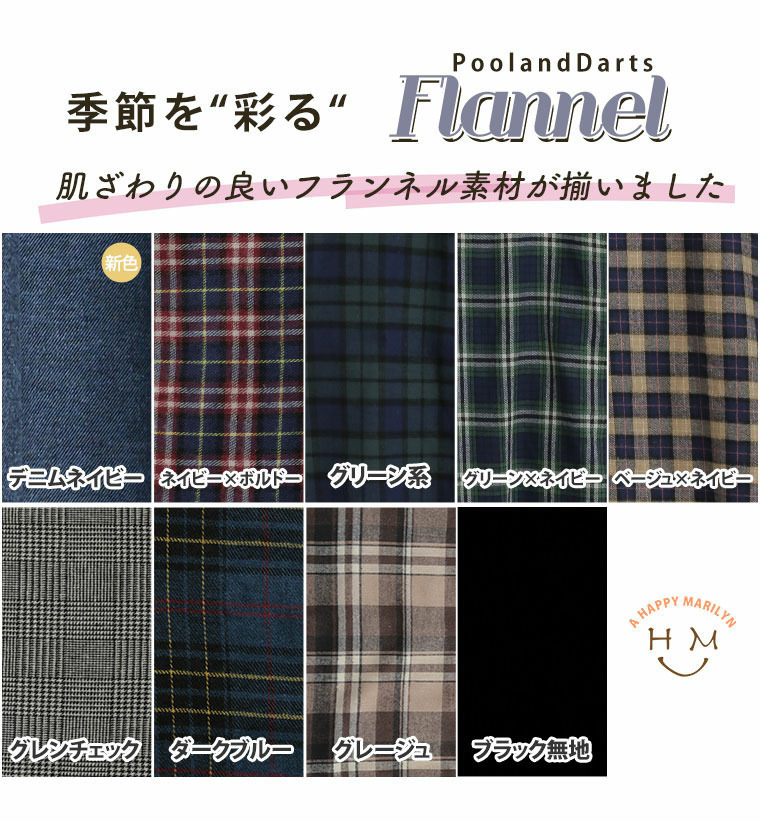 素材 | 〇デニムネイビー ポリエステル77% 綿21% レーヨン2% 〇グリーン×ネイビー ポリエステル68% 綿27% レーヨン5% 〇グリーン系 ポリエステル71% 綿26% レーヨン3% 〇ネイビー×ボルドー ポリエステル71% 綿24% レーヨン5% 〇ベージュ×ネイビー ポリエステル71% 綿24% レーヨン5% 〇ダークブルー ポリエステル66% 綿21% レーヨン13% 〇グレージュ ポリエステル71% 綿21% レーヨン8% 〇グレンチェック ポリエステル61% 綿27% レーヨン12% 〇ブラック無地 ポリエステル63% 綿28% レーヨン9% |