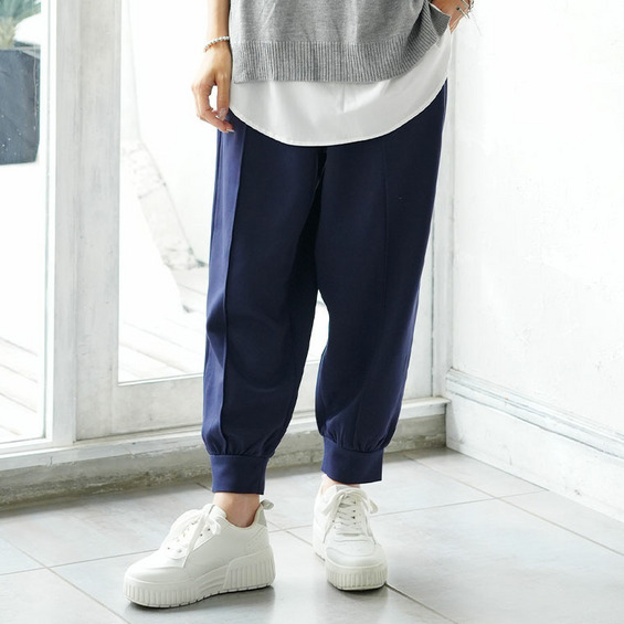 総丈96cm ウエスト87-97cm ヒップ125cm 前股上37cm 後股上46cm 太腿周り68cm 股下65cm 裾周り28cm