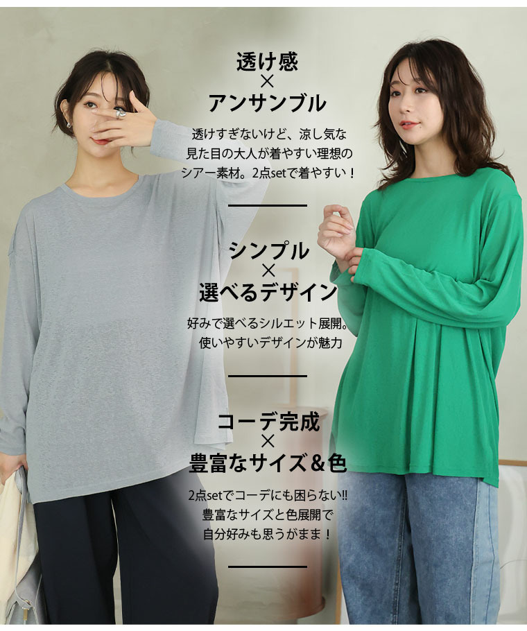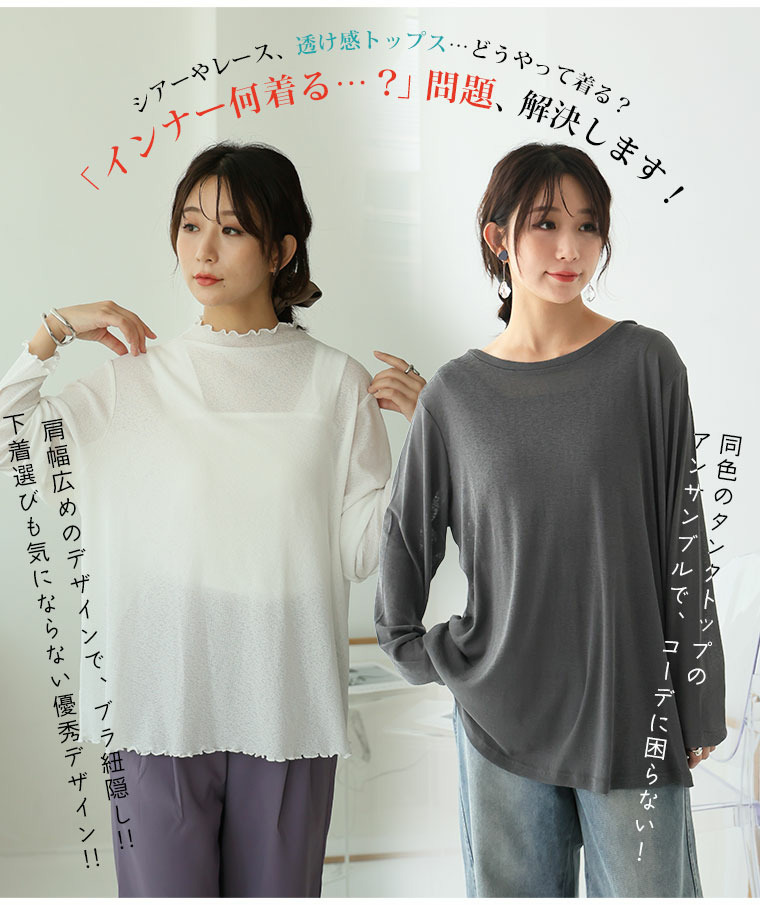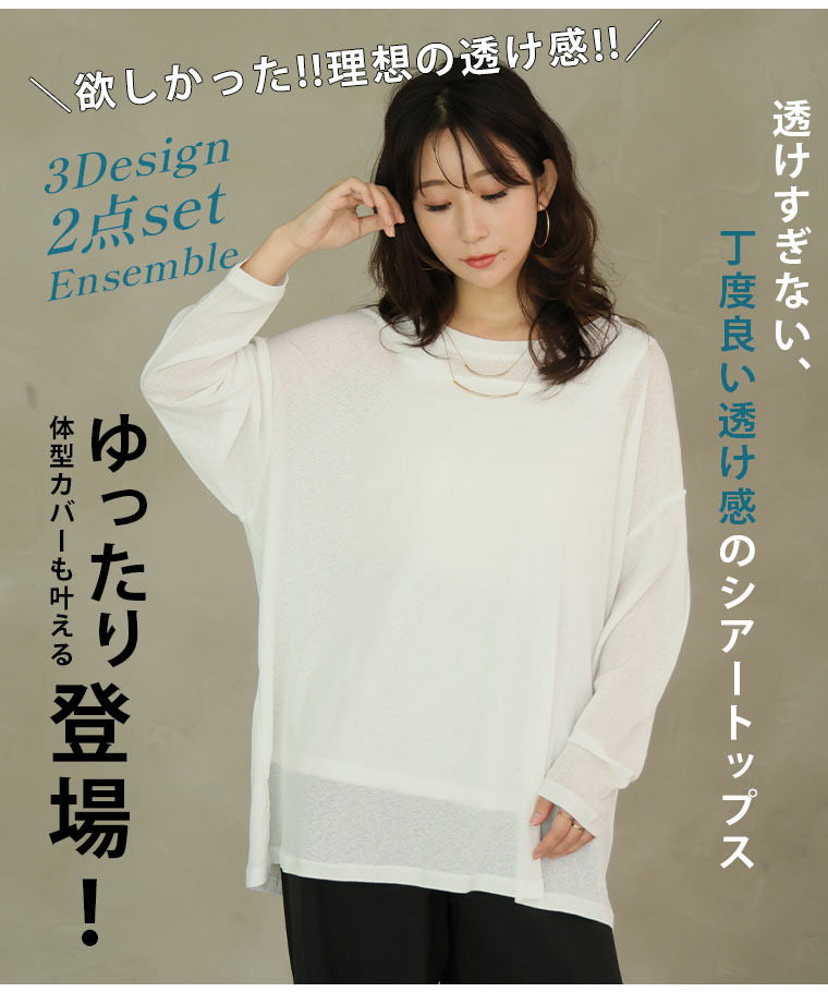 丁度良い透け感 選べる3シルエット 欲しかった 透けすぎない シアー トップス & タンク アンサンブル