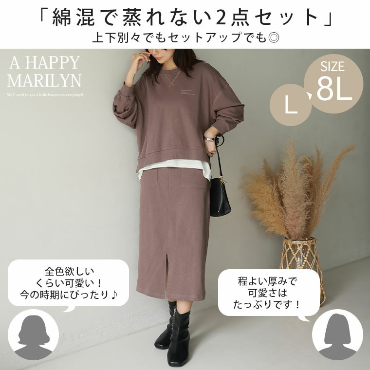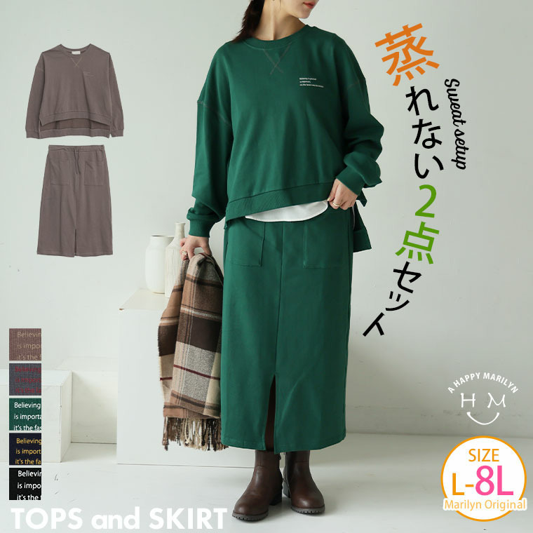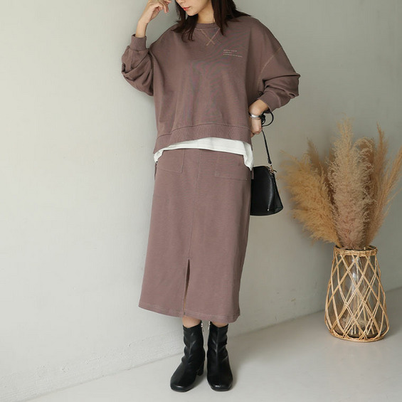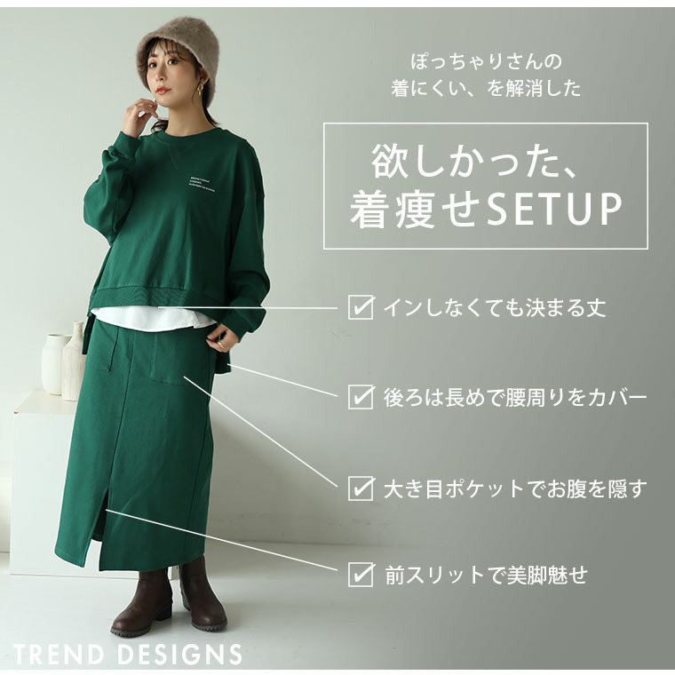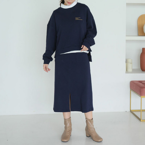 蒸れない セットアップで着痩せが叶う 裏毛 トップス&タイトスカート