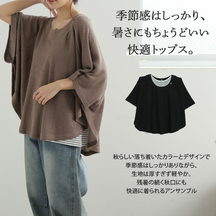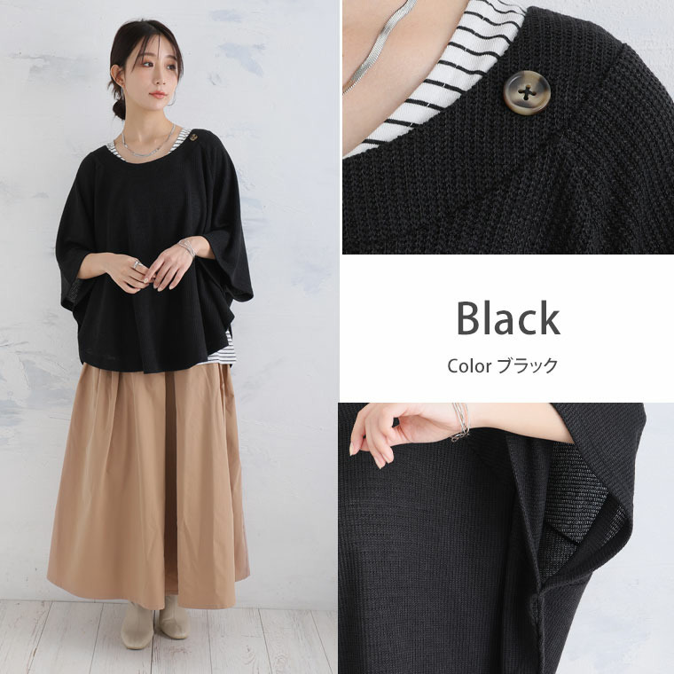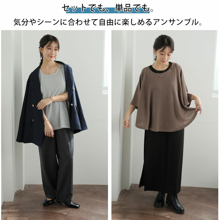 ポンチョ風 アンサンブル ボーダー 2点セット