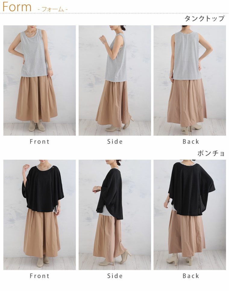 素材 | 〇ポンチョ ポリエステル85% レーヨン15% 〇タンクトップ ポリエステル65% 綿35% |