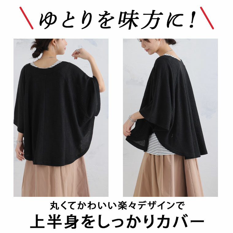 ポンチョ:透け感あり/裏地なし/伸縮性あり/ポケットなし