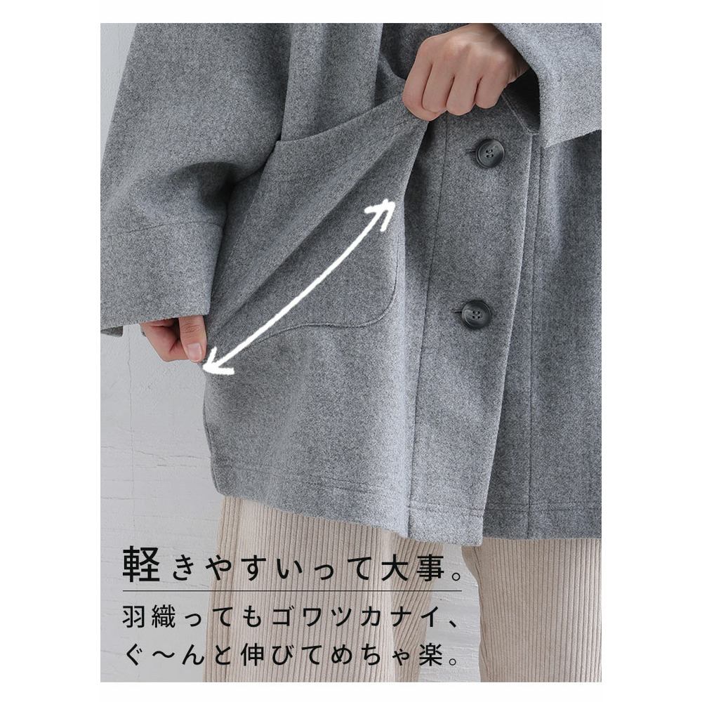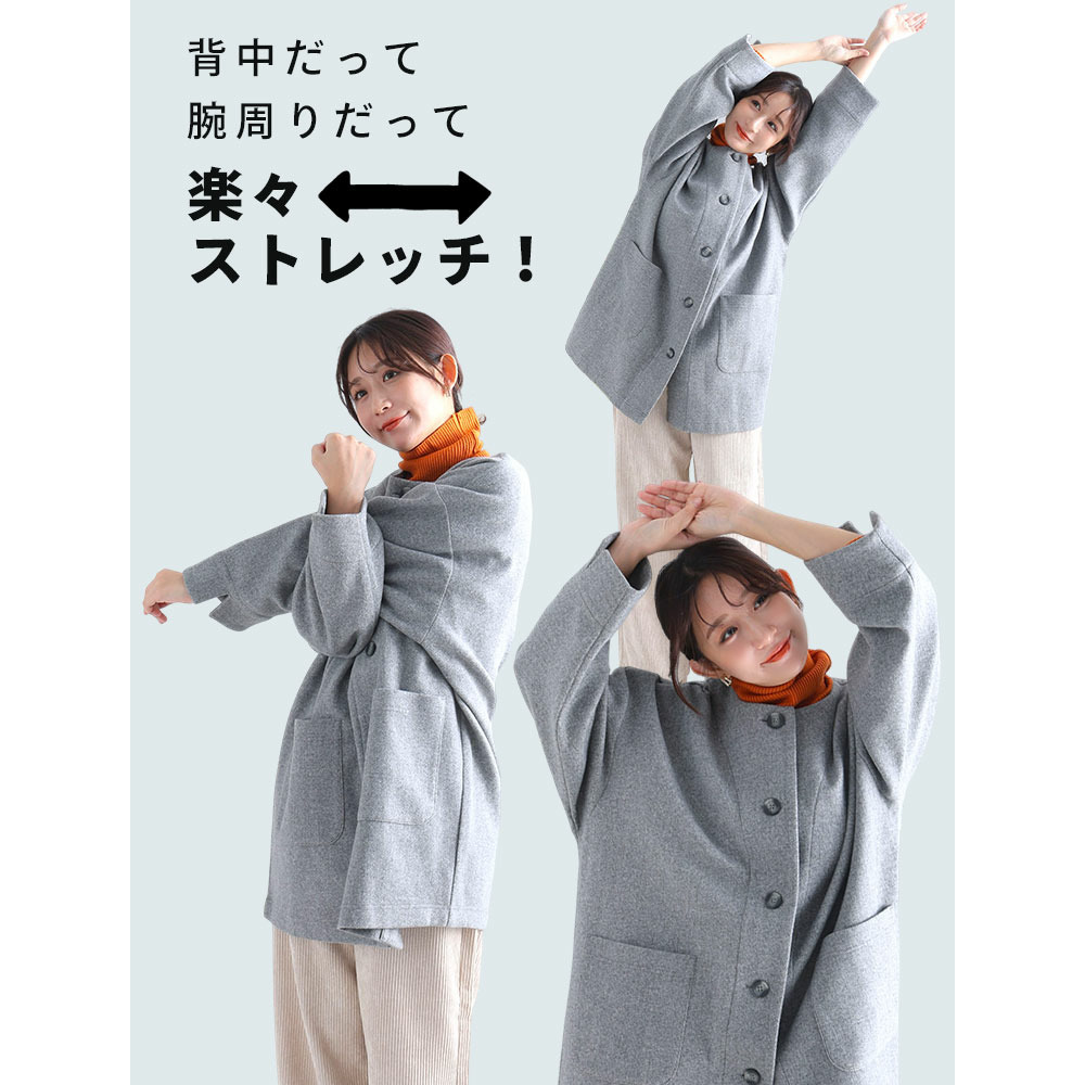 カーデ感覚で羽織れるのがいい!! ストレッチ素材の コクーン ジャケット