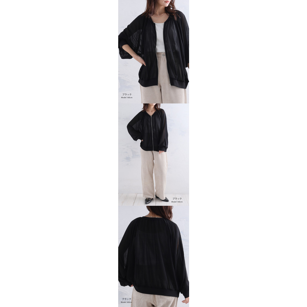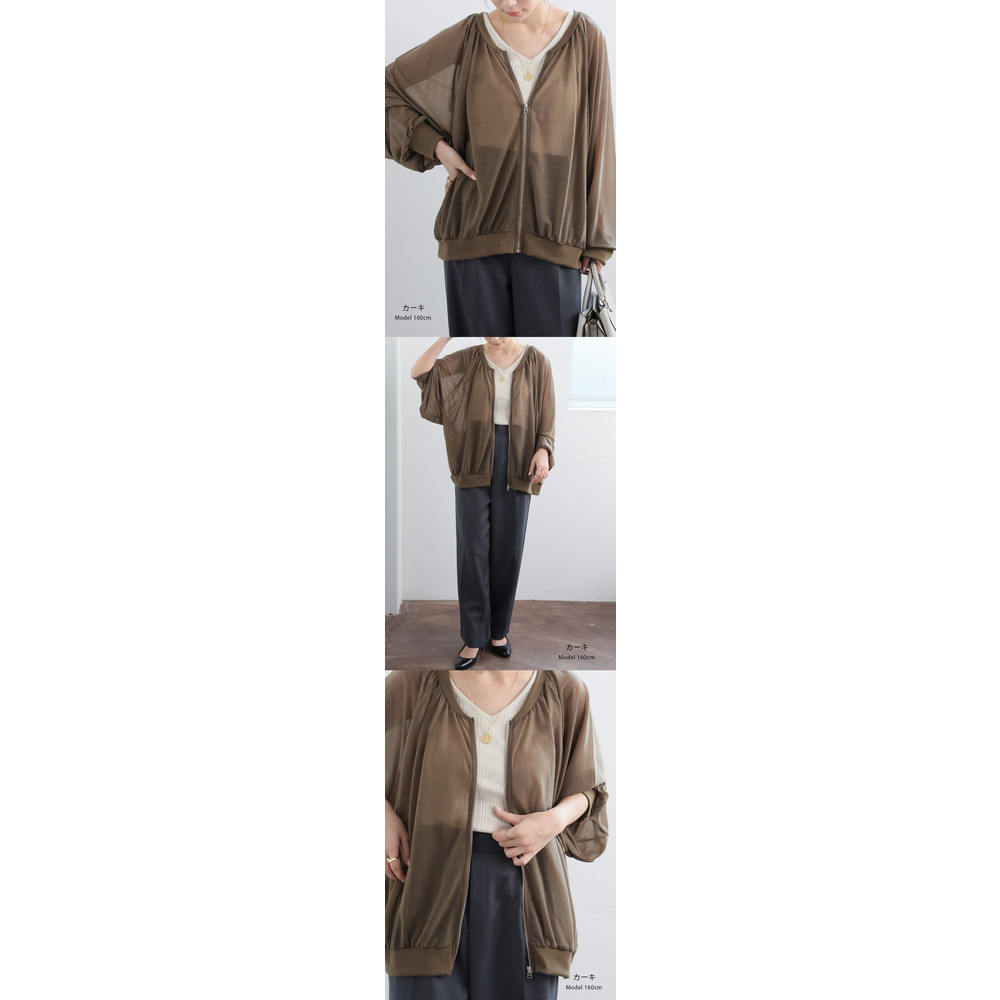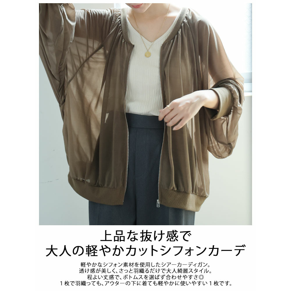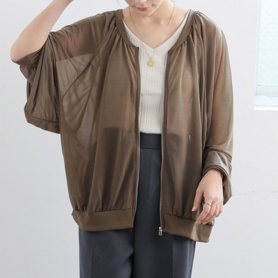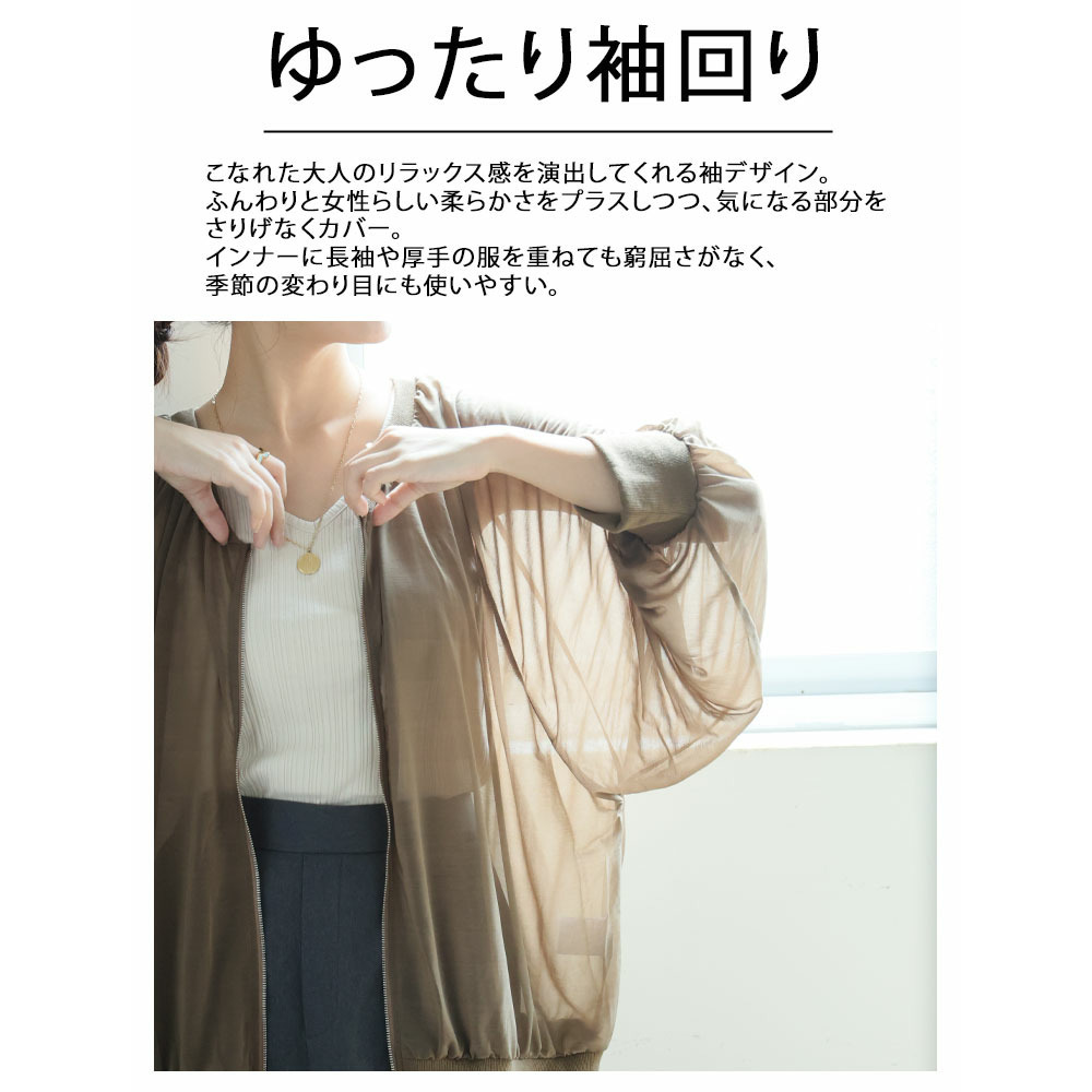 伸びる! 着心地さらり シアー カットシフォン カーデ ブルゾン ストレッチ