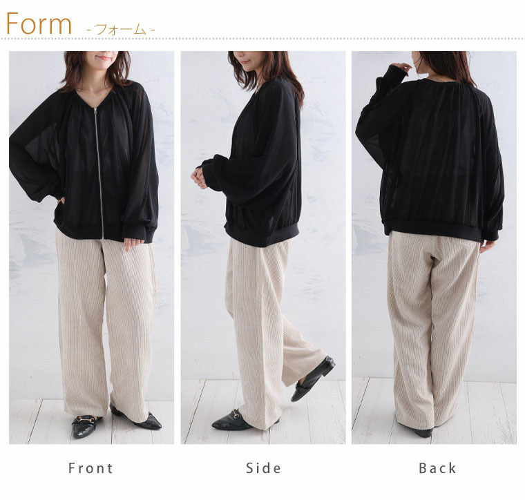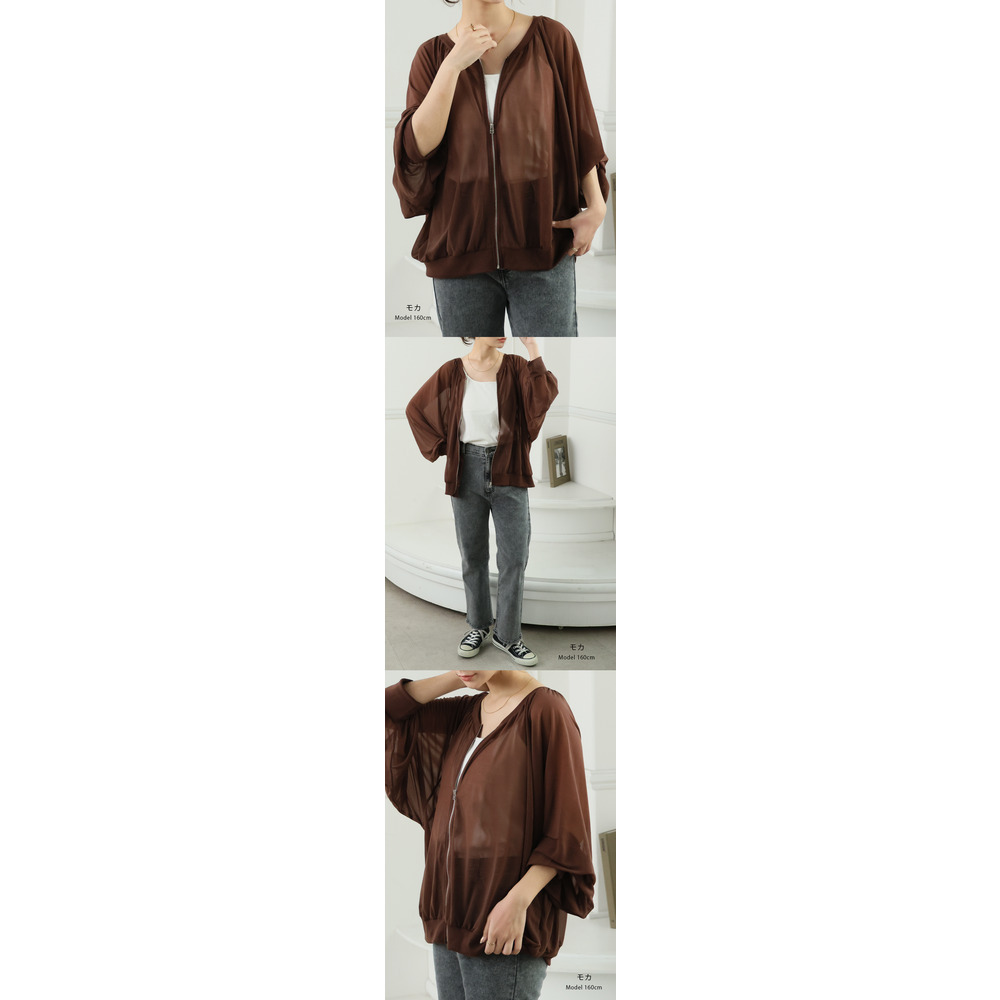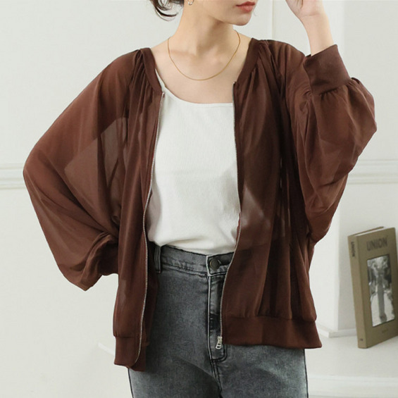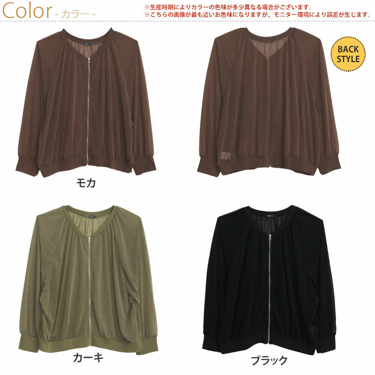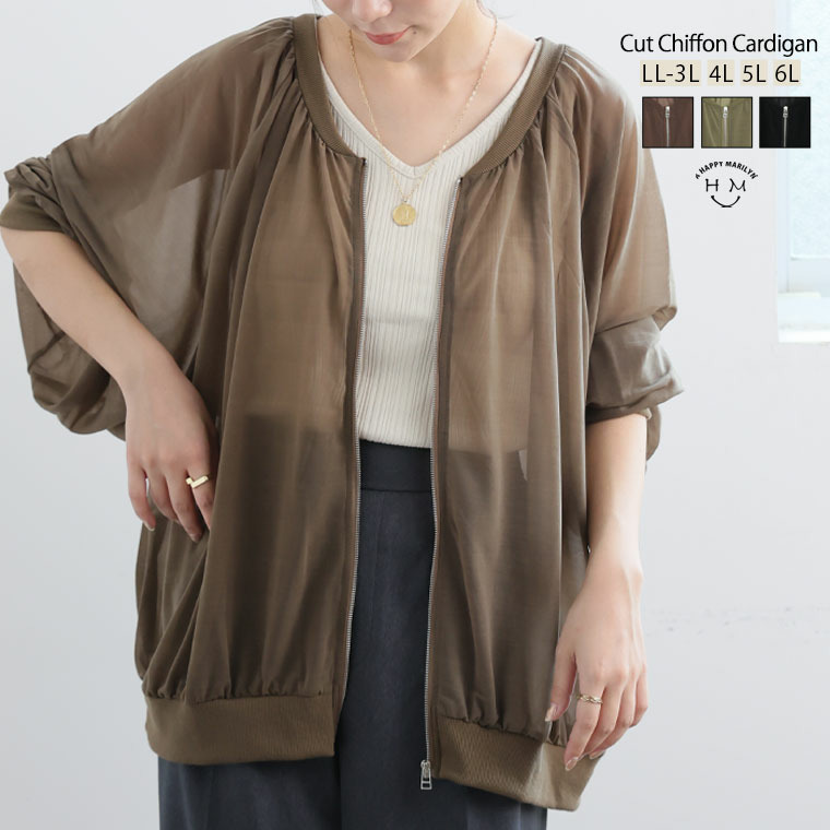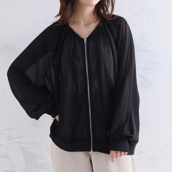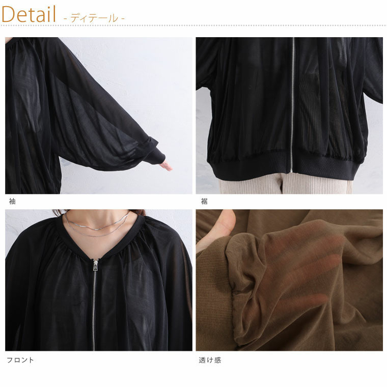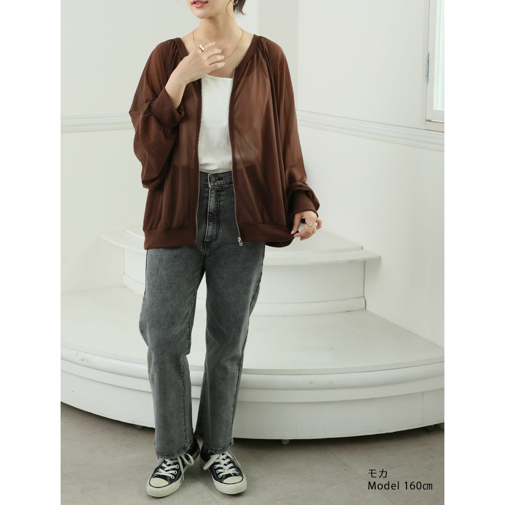 伸びる! 着心地さらり シアー カットシフォン カーデ ブルゾン ストレッチ