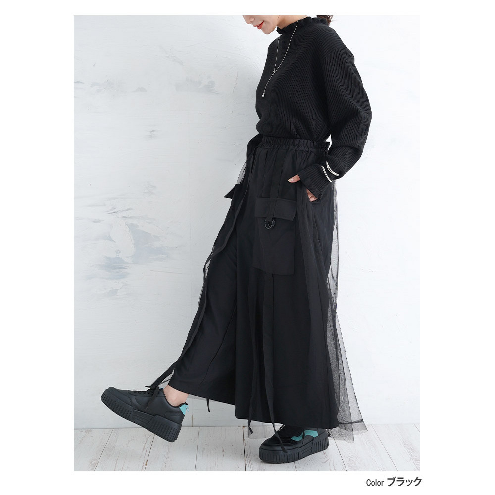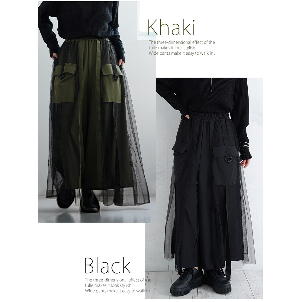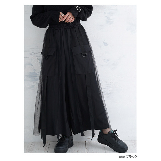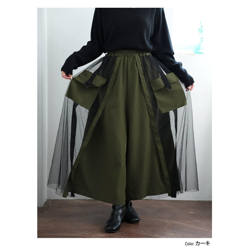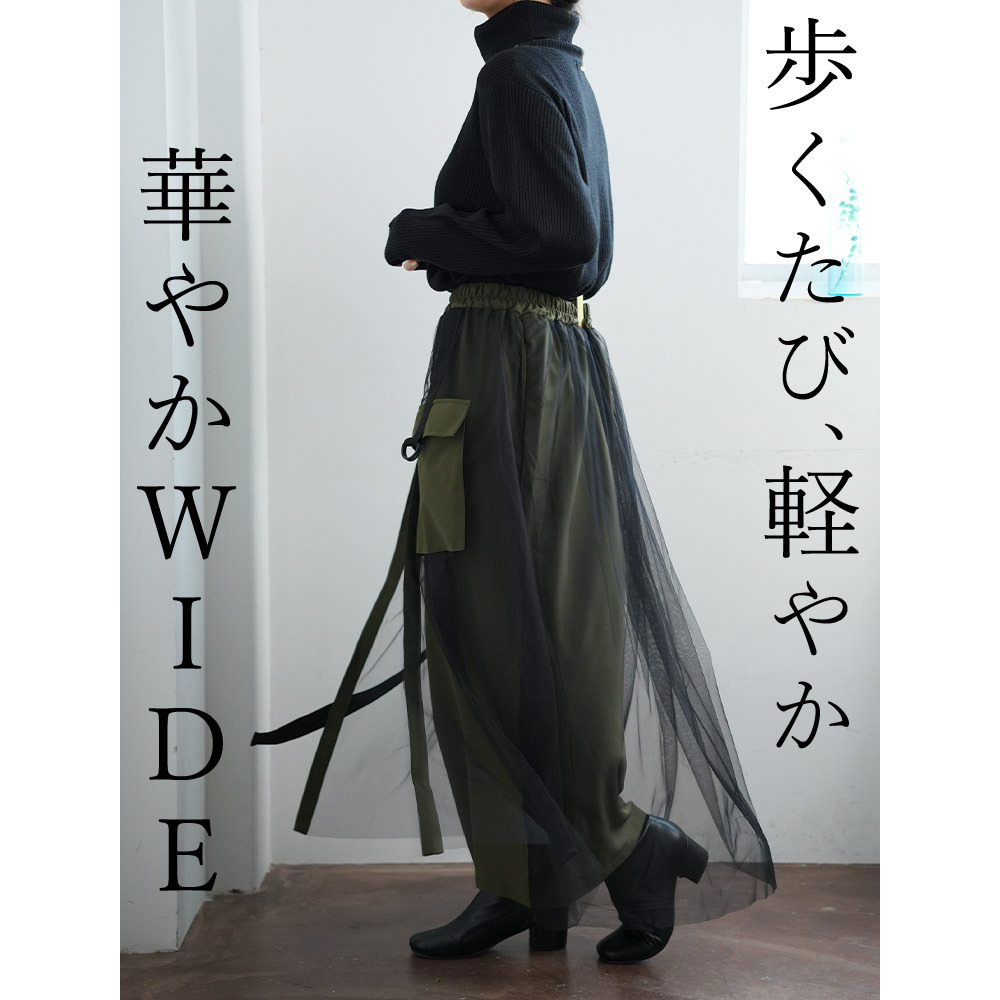 【Pastel Leaf】チュール重ね デザイン ワイドパンツ