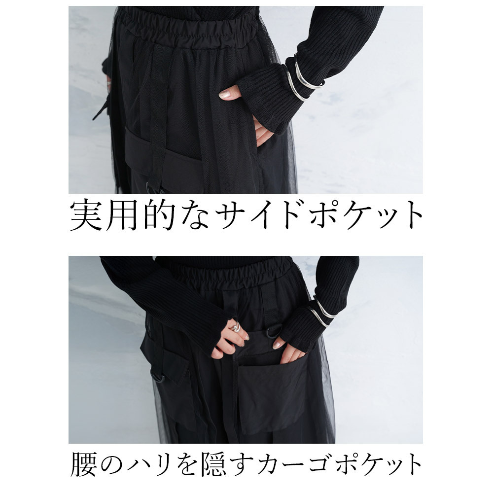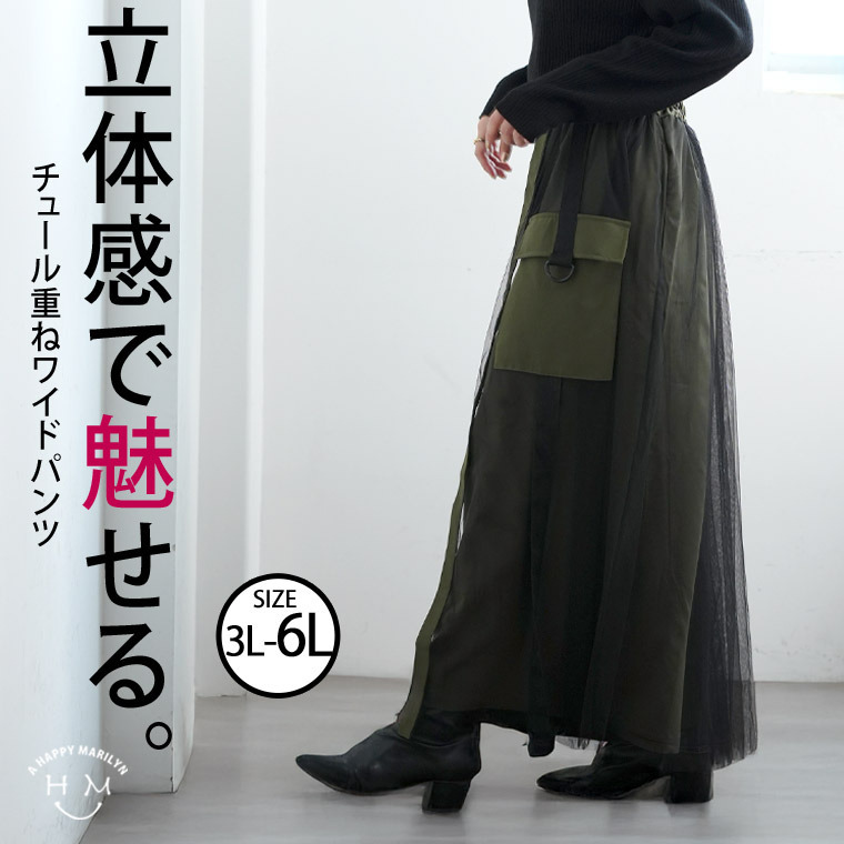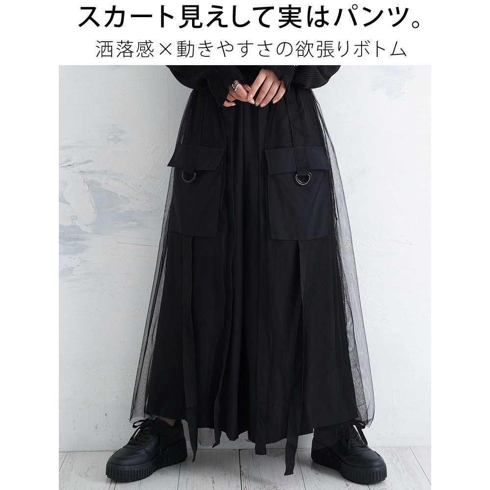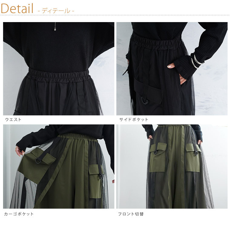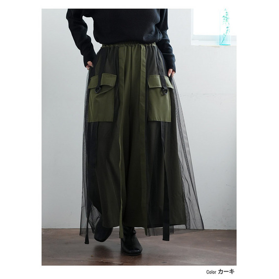 【Pastel Leaf】チュール重ね デザイン ワイドパンツ
