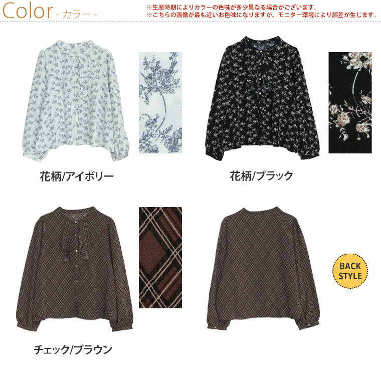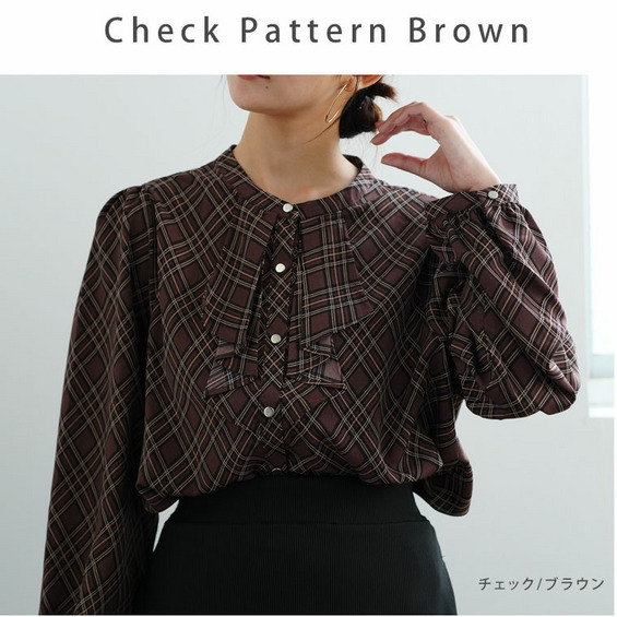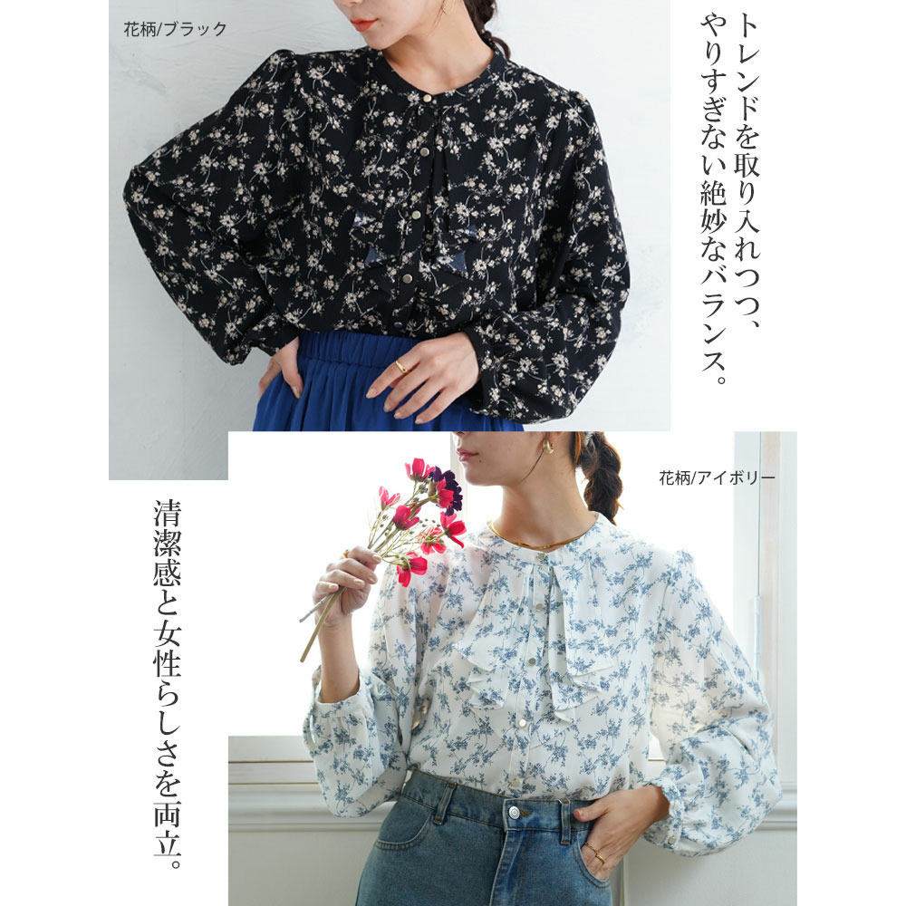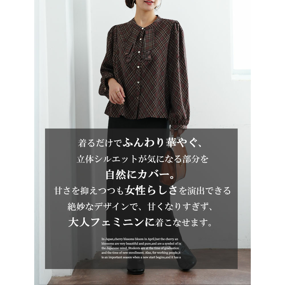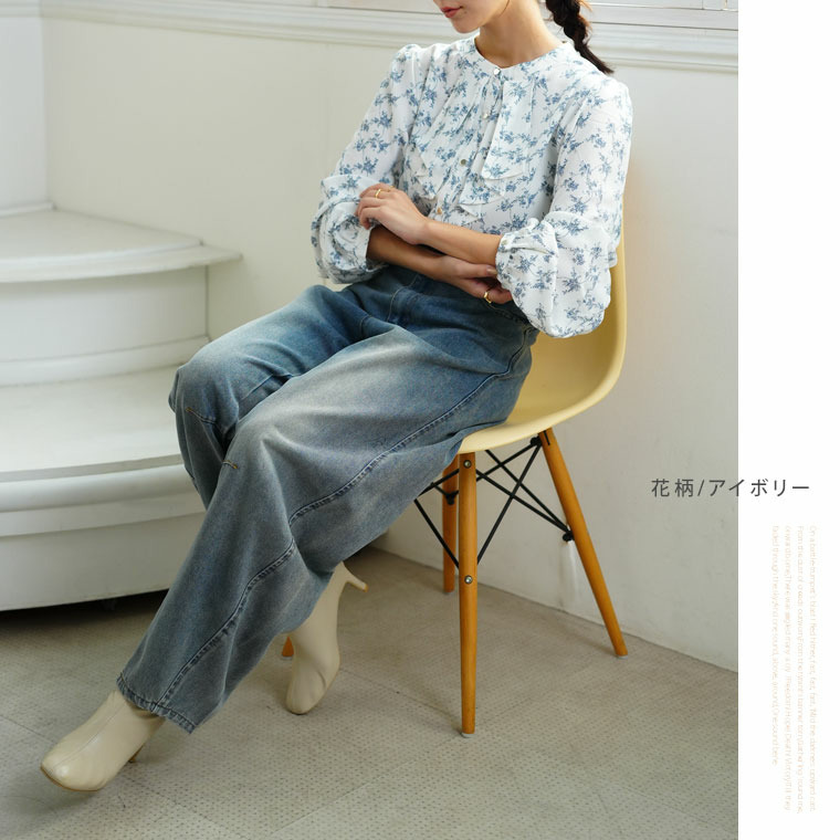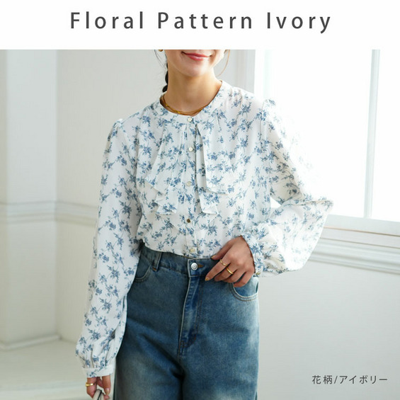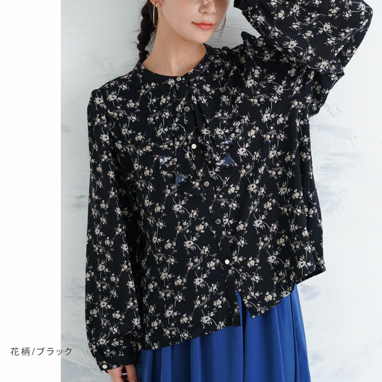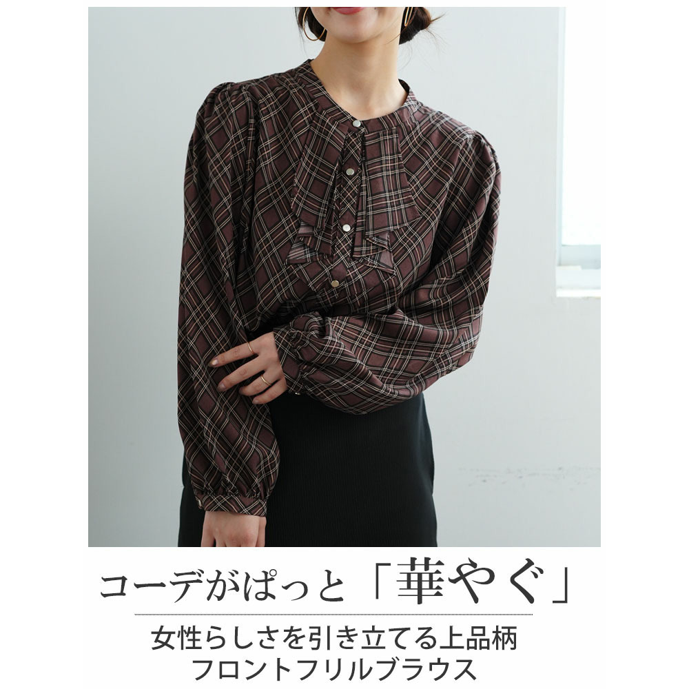 フロントフリルブラウス 花柄 チェック
