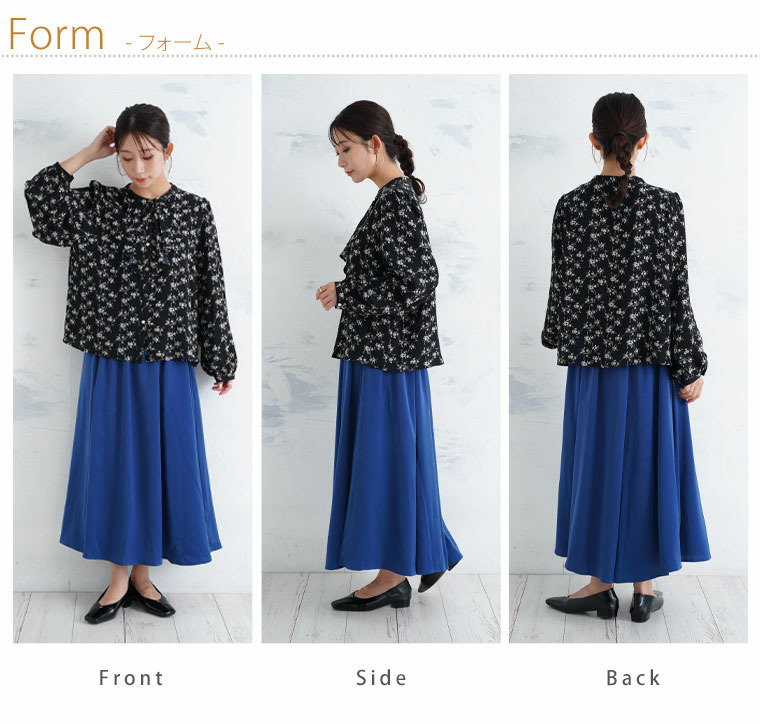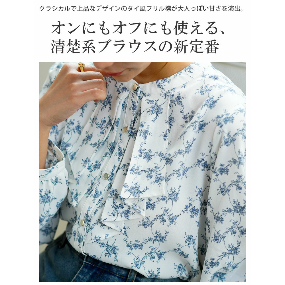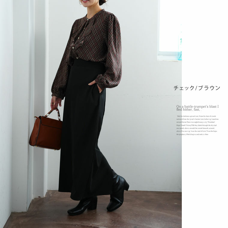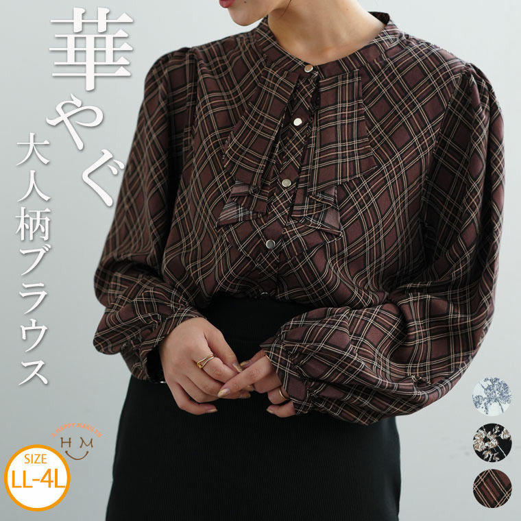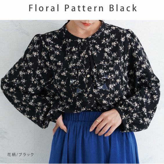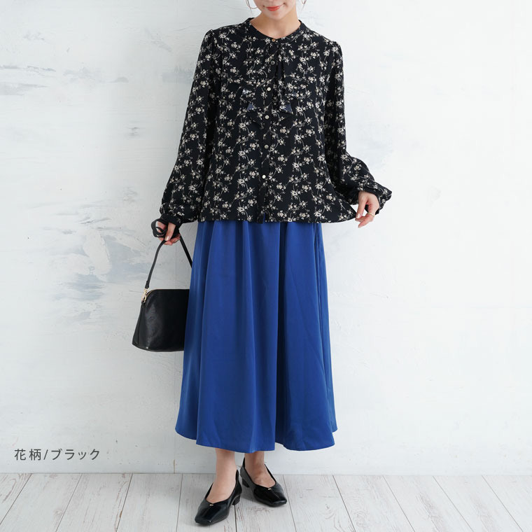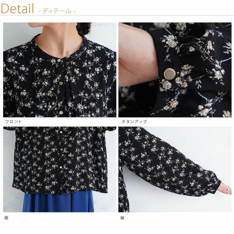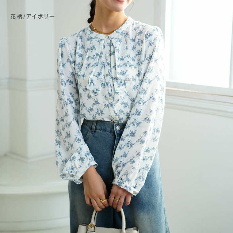 フロントフリルブラウス 花柄 チェック