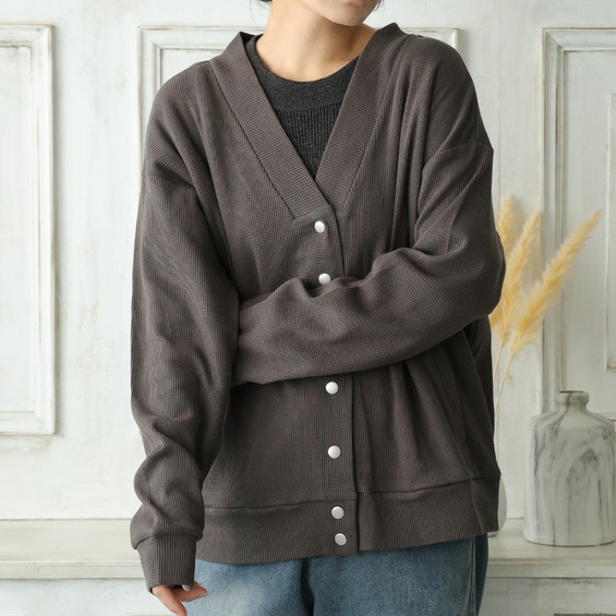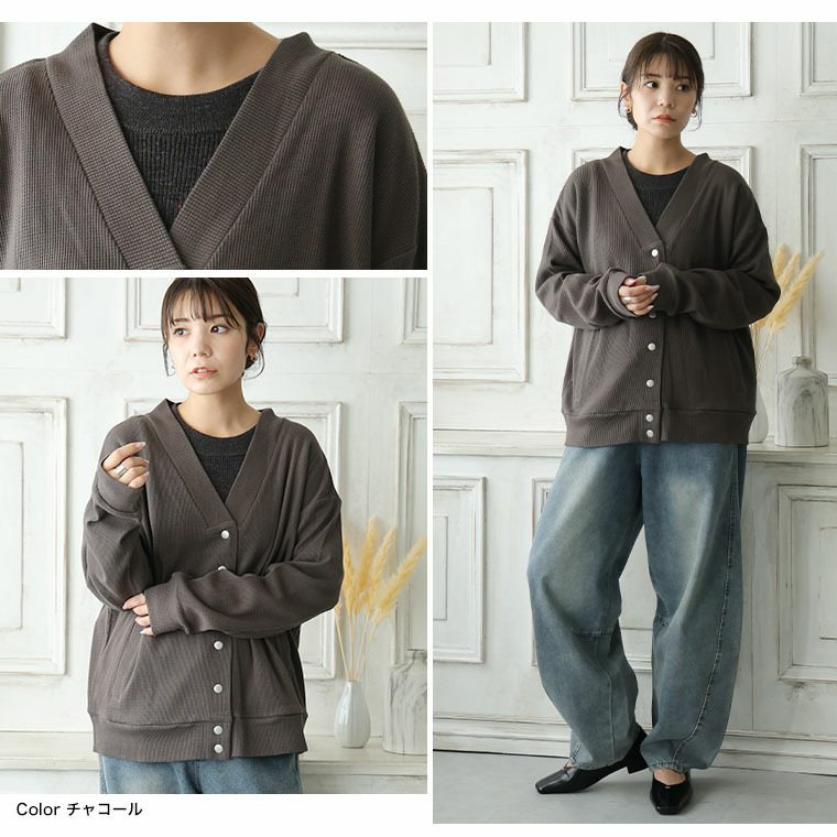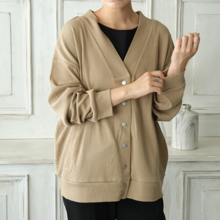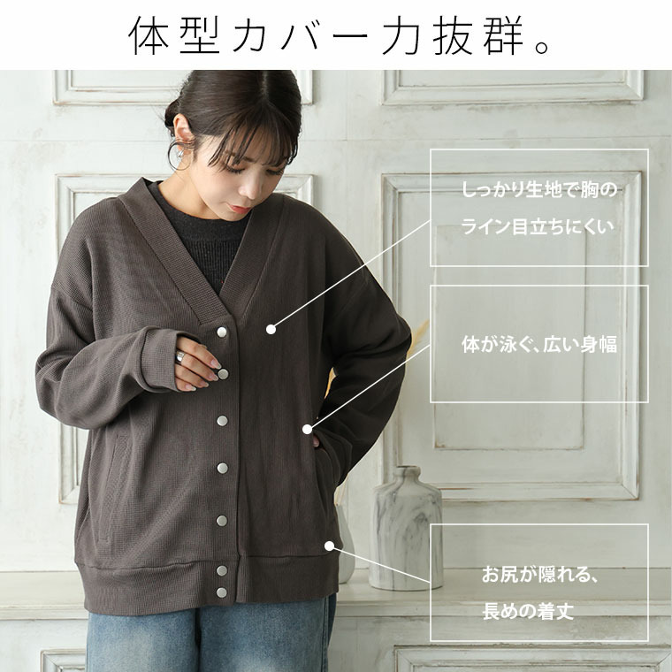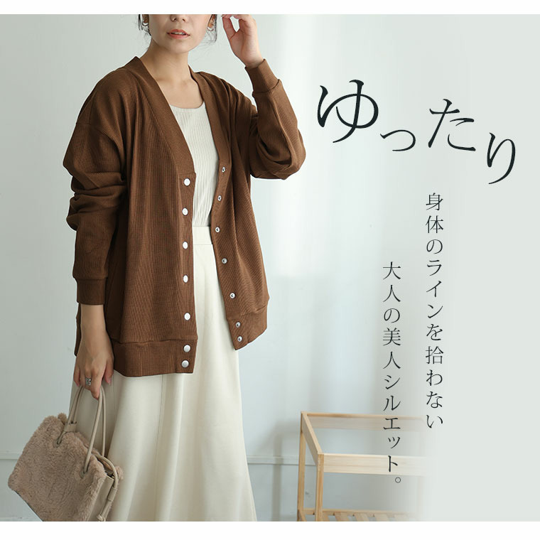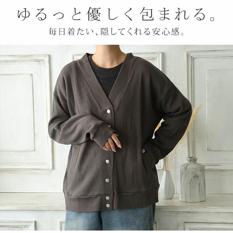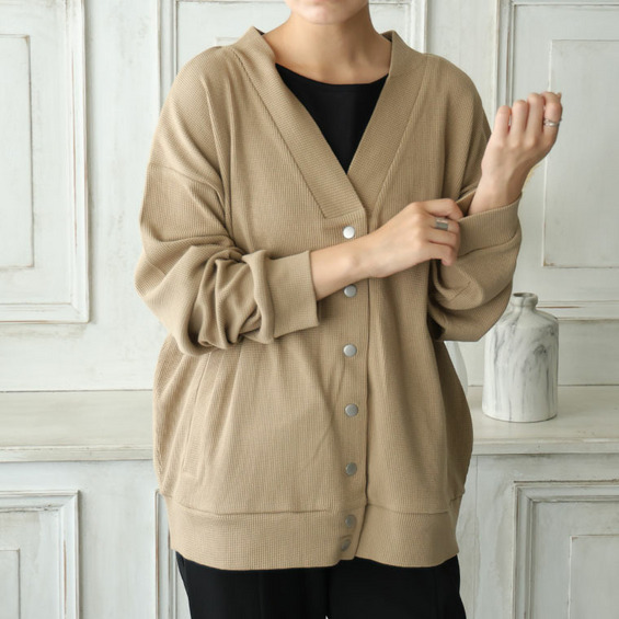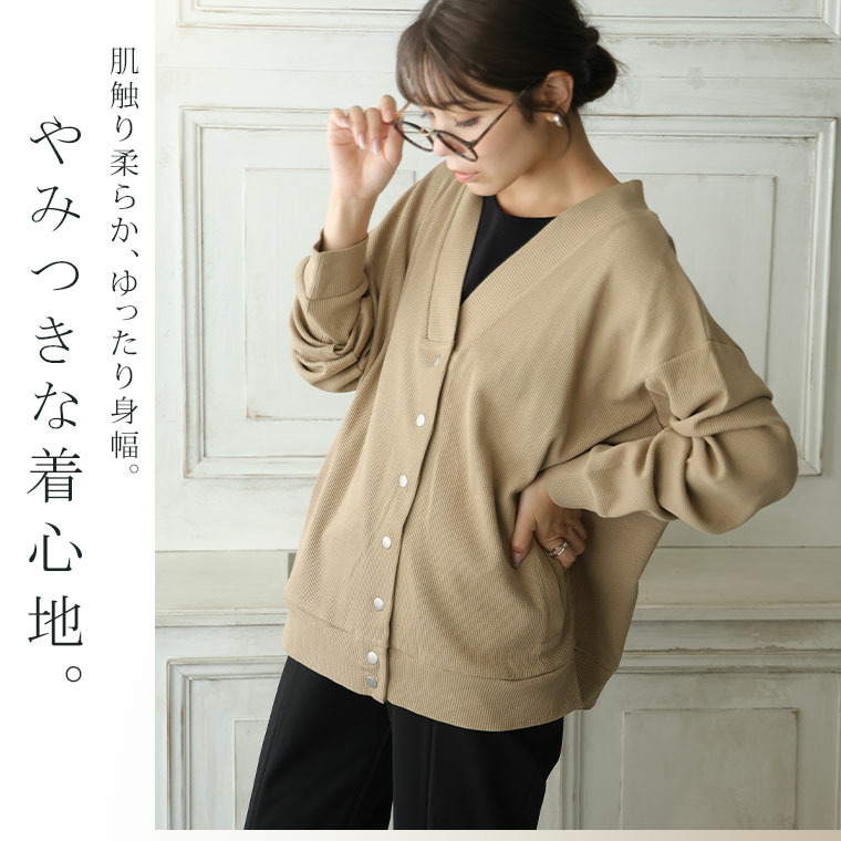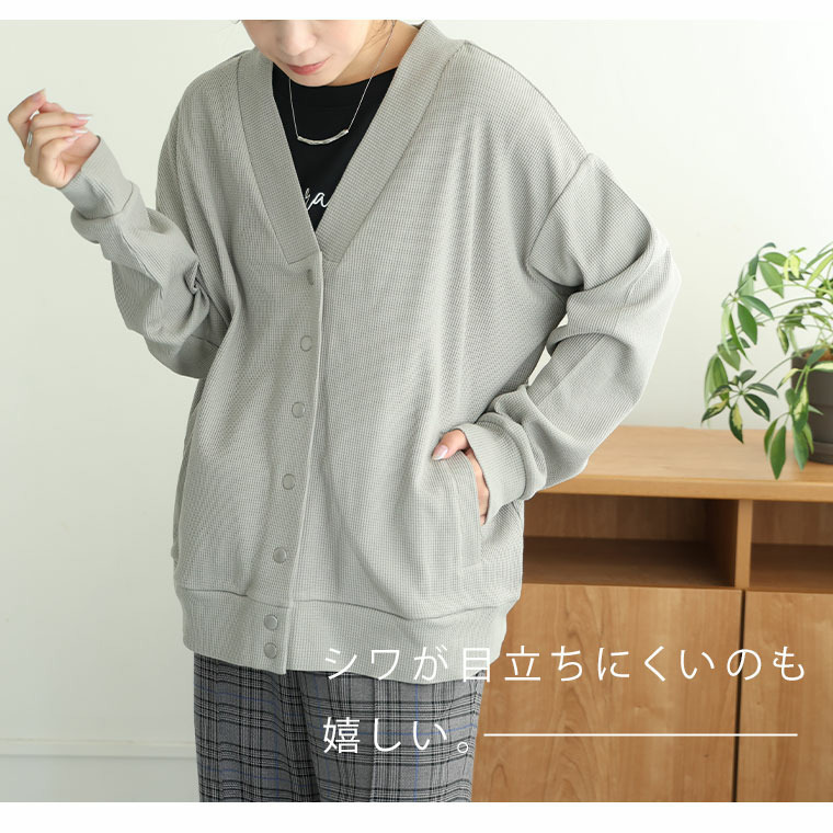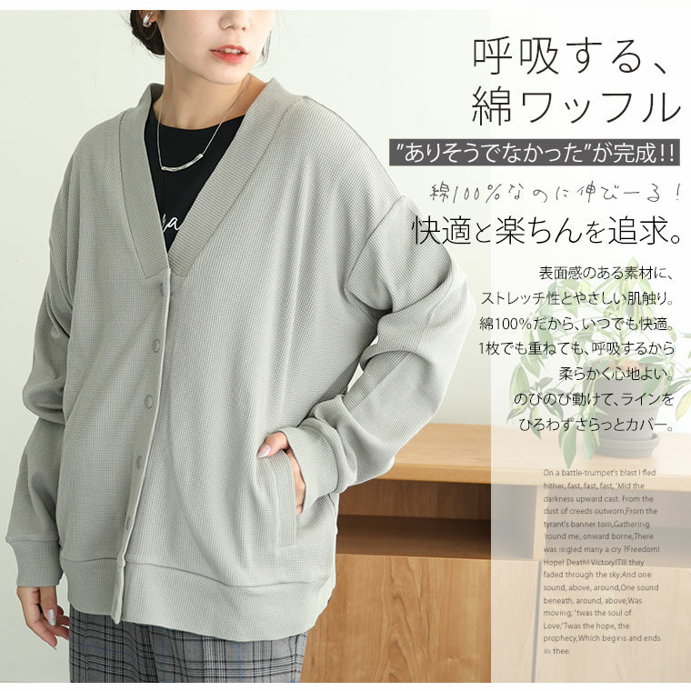 呼吸するコットン100% 楽のび ワッフルシリーズ ゆるカーディガン