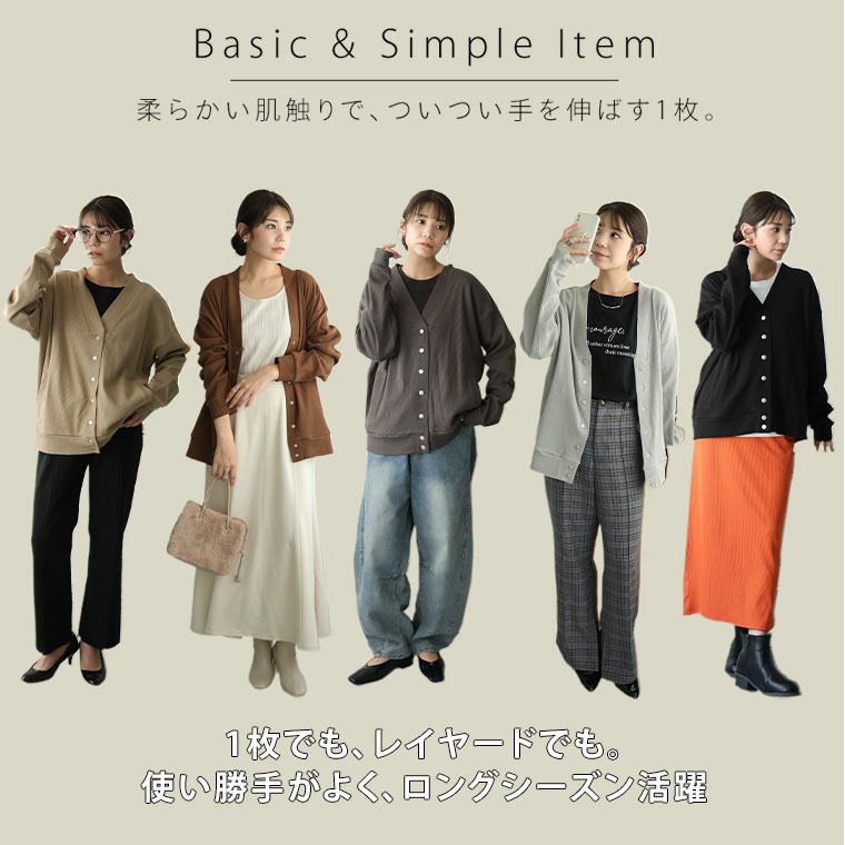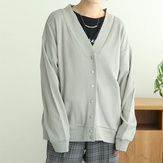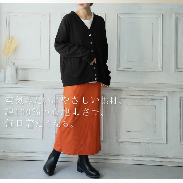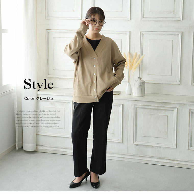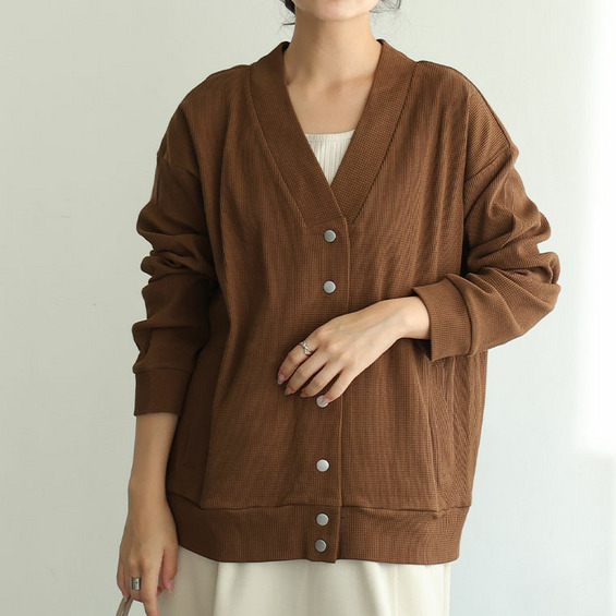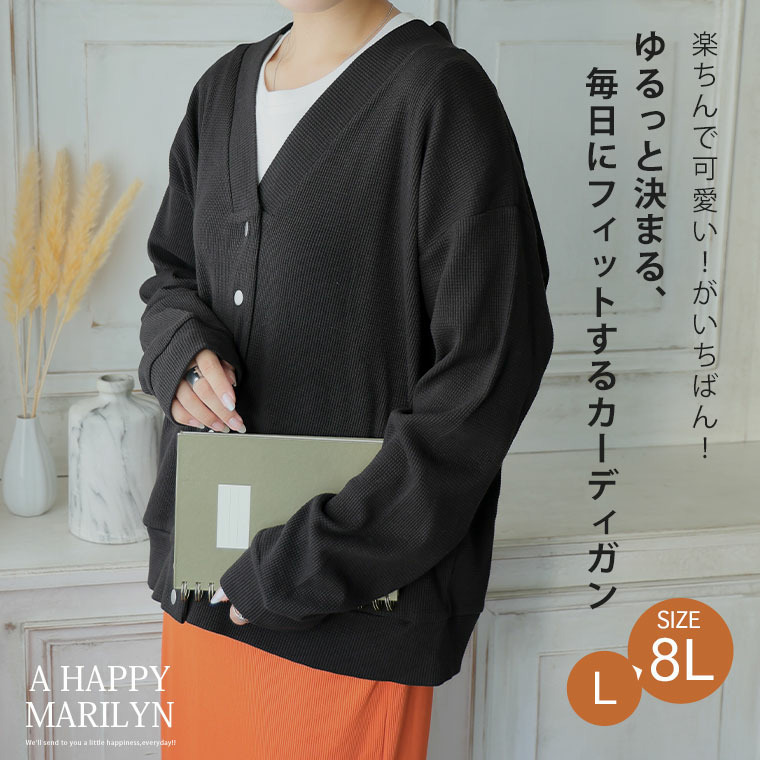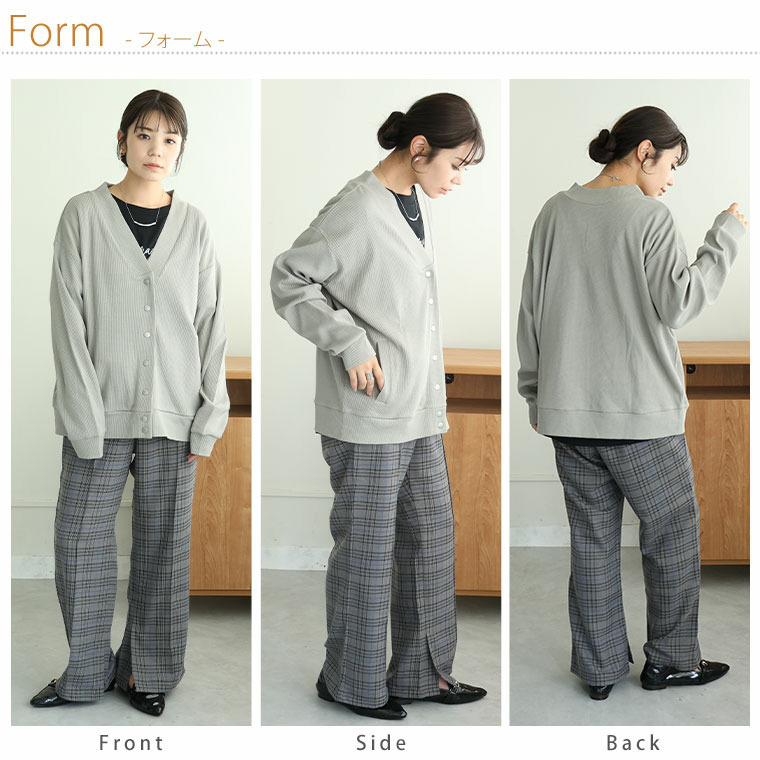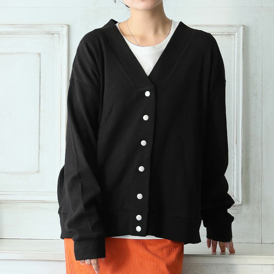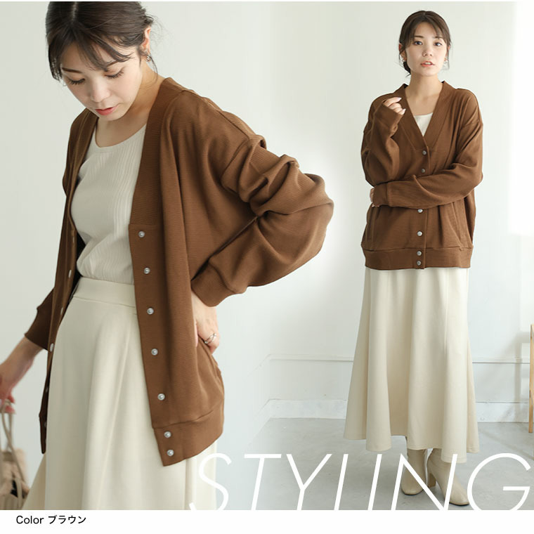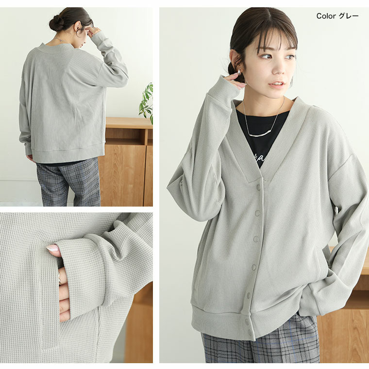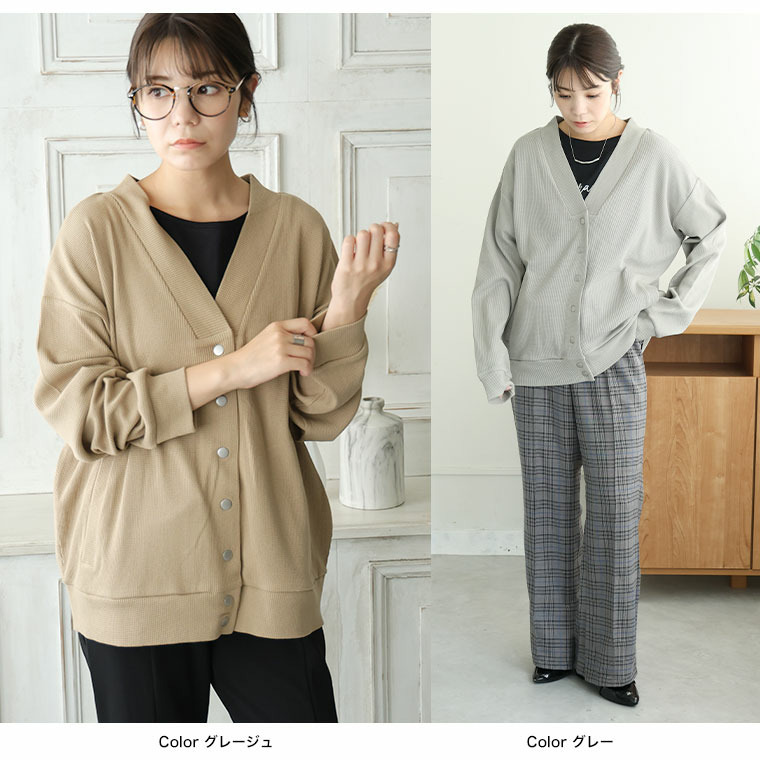 呼吸するコットン100% 楽のび ワッフルシリーズ ゆるカーディガン